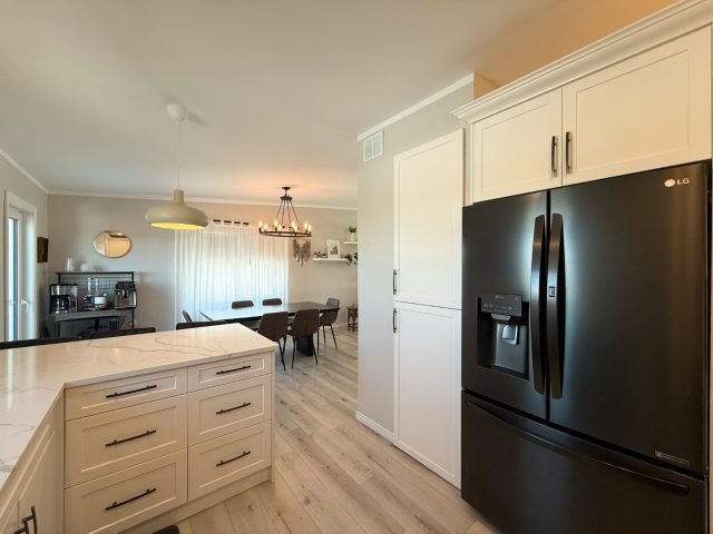 Bi-level home featuring a spacious open-concept kitchen, dining, and living area – ideal for everyday living and entertaining! The Kitchen has seen updates that include kitchen cabinets and island with quartz countertops and new recessed lighting. The main level offers two comfortable bedrooms, including a primary bedroom with a walk-in closet, along with a large...