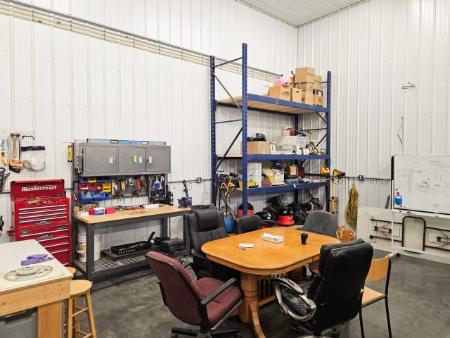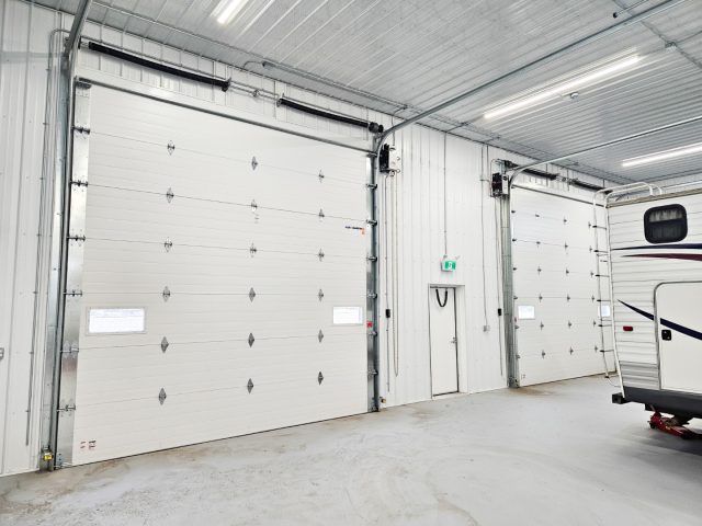 This well-equipped 3,560 sq ft shop includes two private offices (each measuring 9’6″ x 10′), a dedicated laundry/mechanical room and a full 4-piece washroom complete with a shower and urinal. The main shop features two large 12′ x 14′ overhead doors, making access for equipment and vehicles easy and seamless. In addition, a separate 18′...