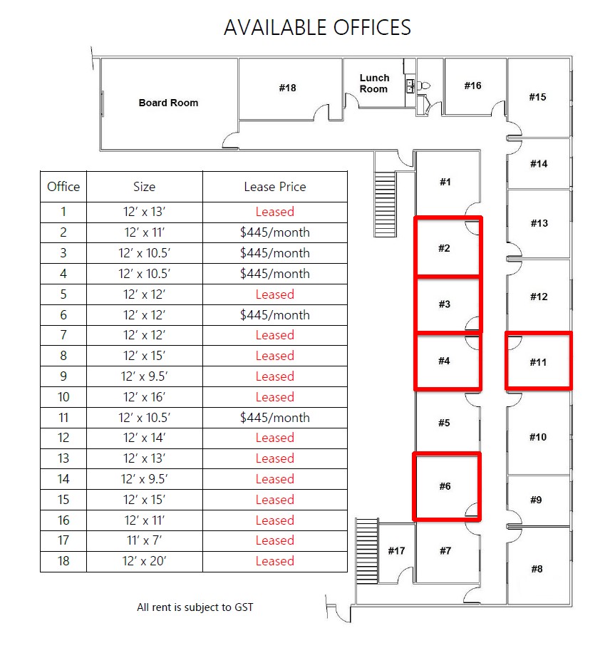 Lease prices starting at $445/month, all-inclusive + GST