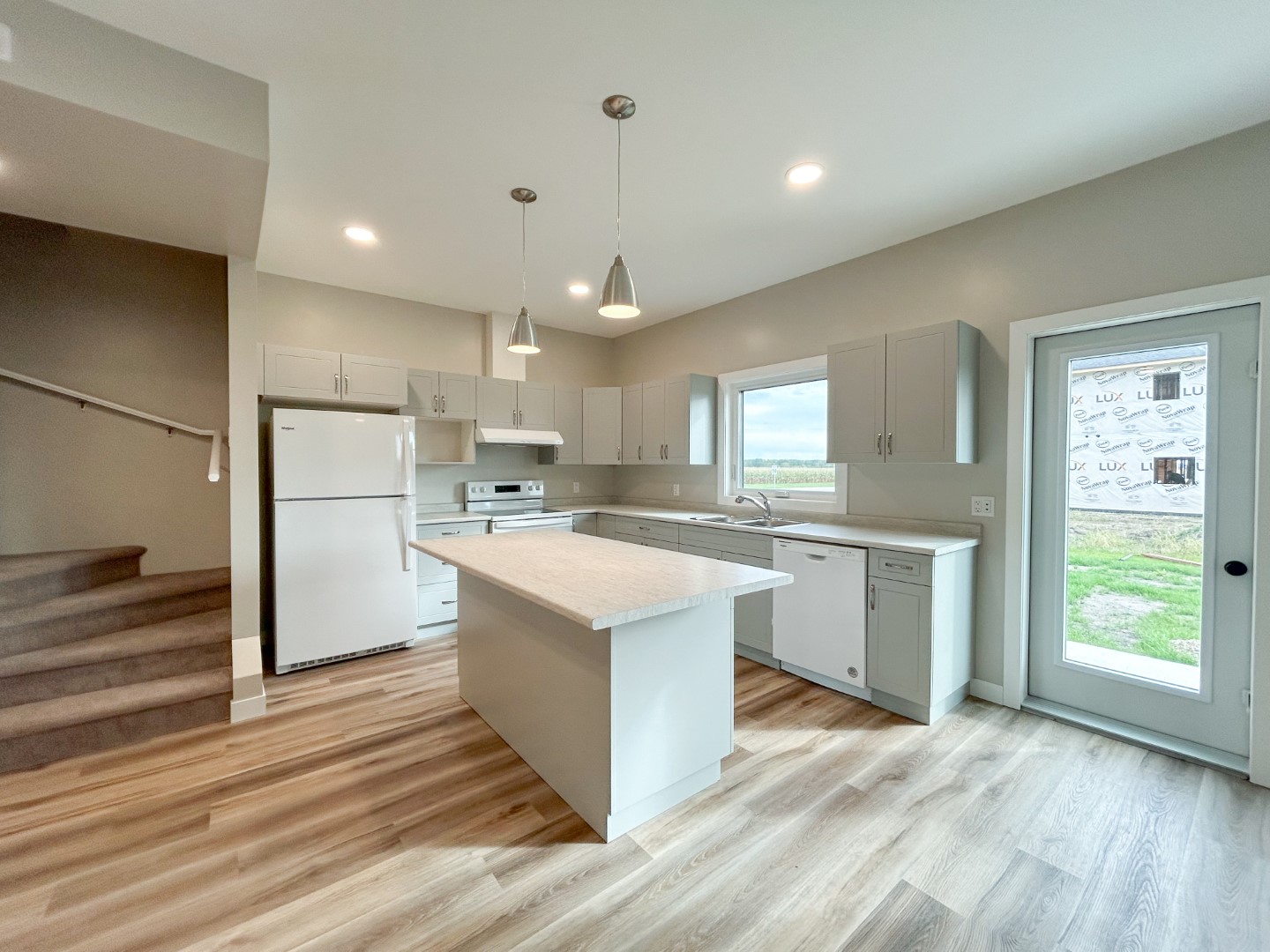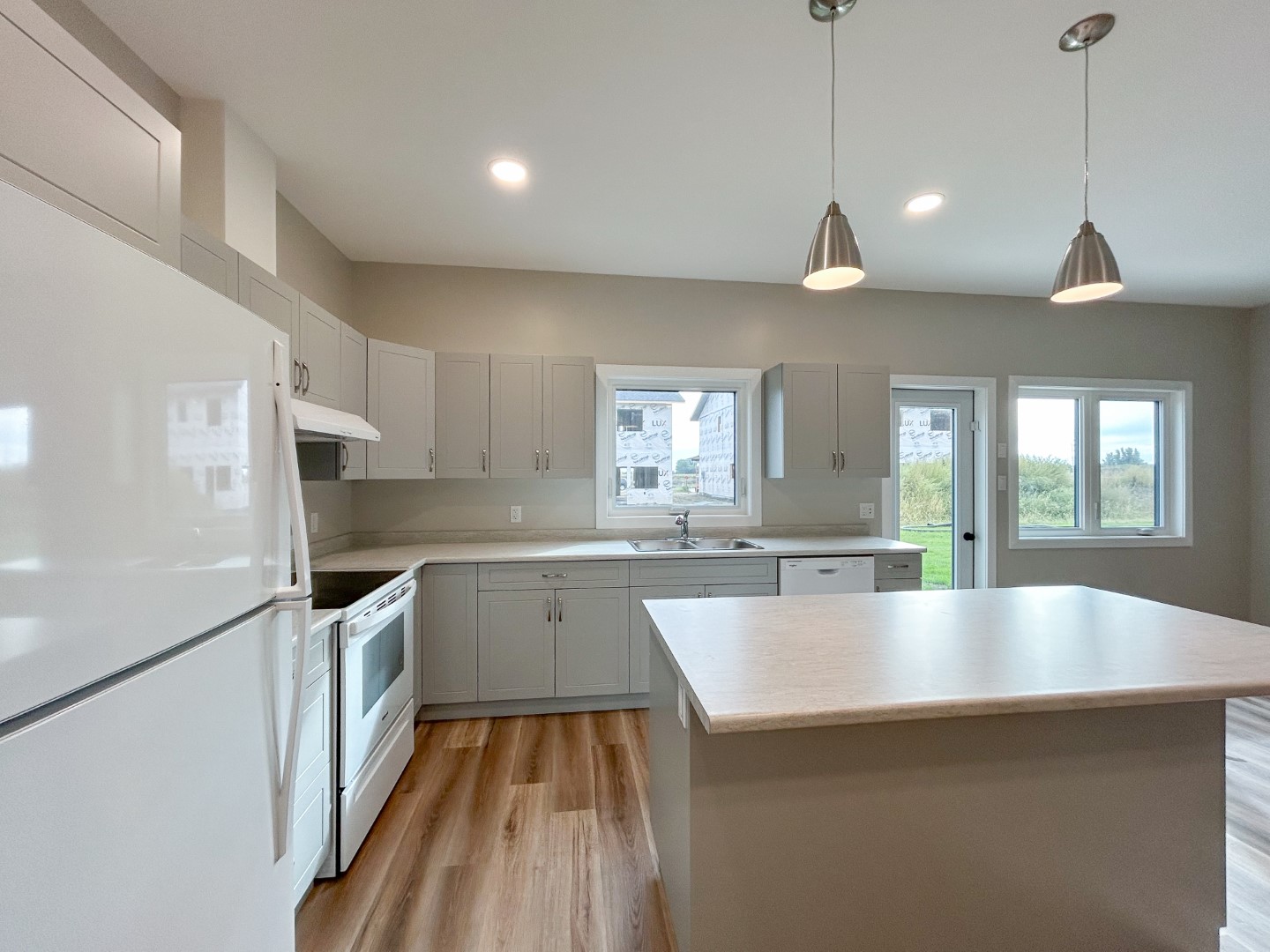 These brand new attached homes are now under construction in Winkler’s new development, The Parks, located along Northlands Parkway! Each unit offers open concept main floor living areas with vinyl plank flooring, Lexington Style white or grey kitchen cabinets with island by Commander Kitchens, three 2nd floor bedrooms, primary bedroom with ensuite & walk-in closet, concrete slab foundation with in-floor heat pipes (ready for boiler), seamless steel siding, concrete 6’x10’ back patio & 6’ PVC privacy fence. 5-year Blanket Home Warranty included.