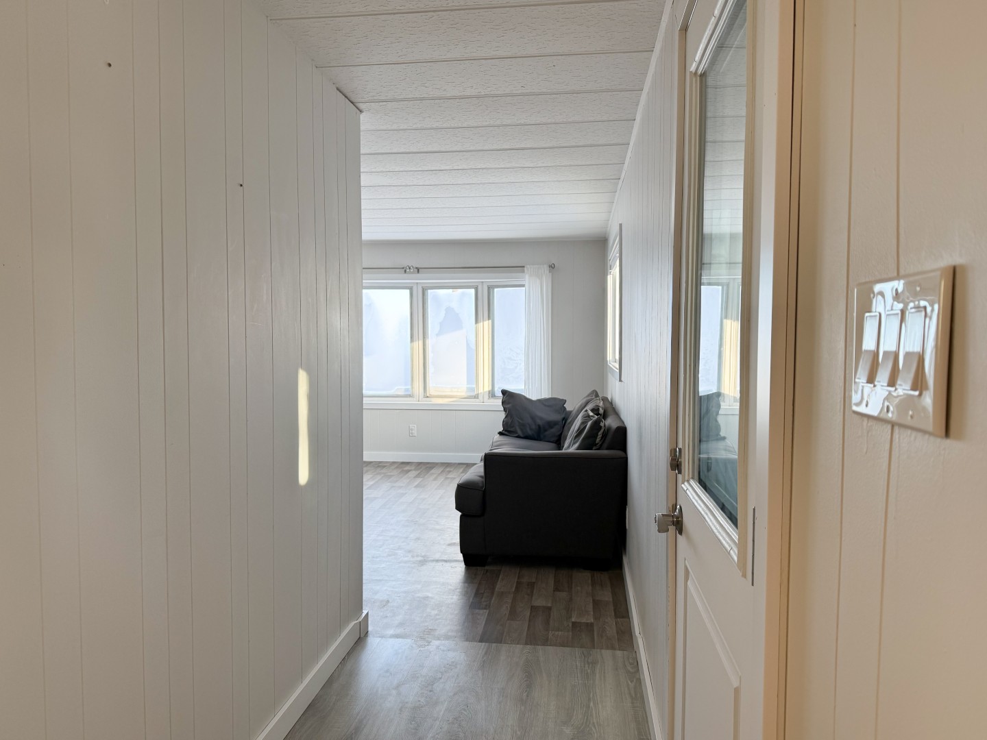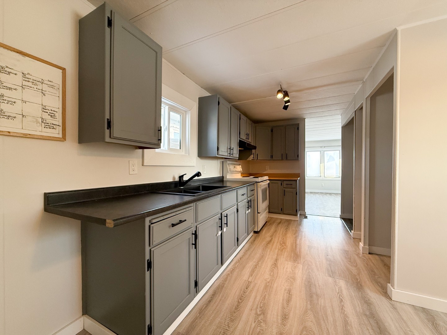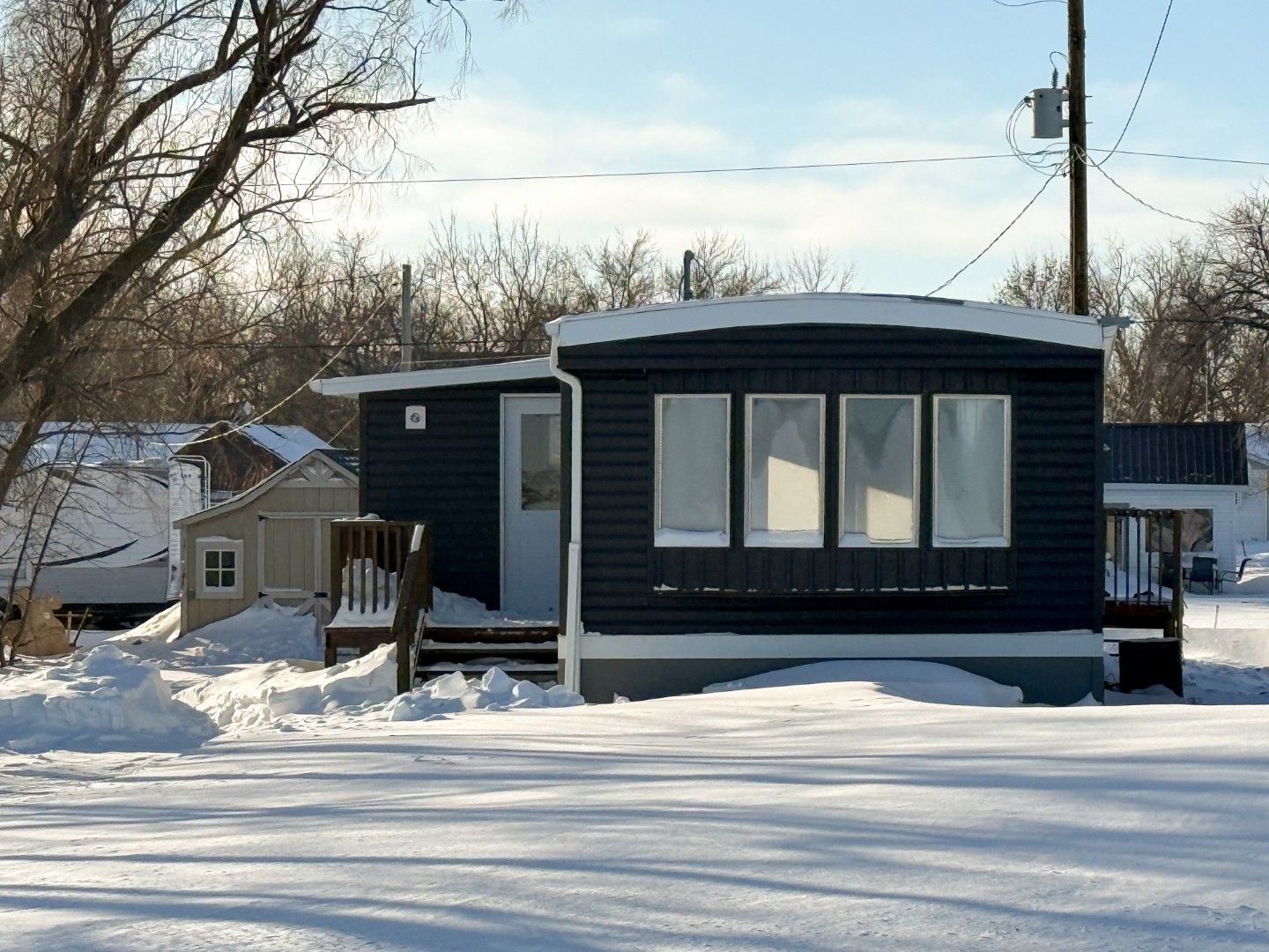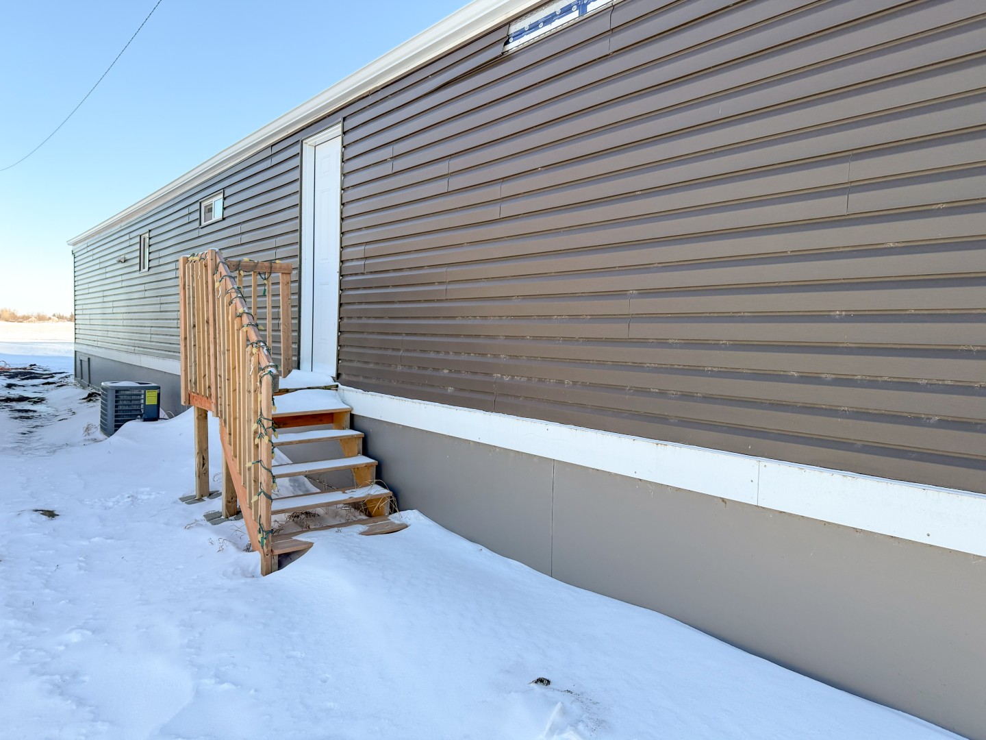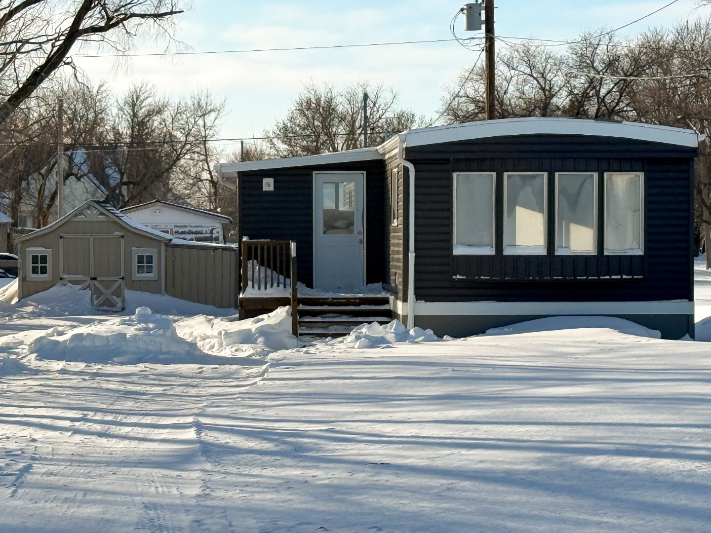 Perfect starter home or investment property in a quiet neighborhood! Situated on the east side of Rosenfeld, overlooking the countryside, you will find this 2 bed, 1 bath mobile home. Recent updates include pvc windows and doors, siding with styrofoam underneath, skirting, eavestroughs, flooring, trim, paint, and a small entrance addition with deck. Take advantage of this affordable property with low taxes and no lot rent. Stove, washer, and dryer included. Quick possession available.