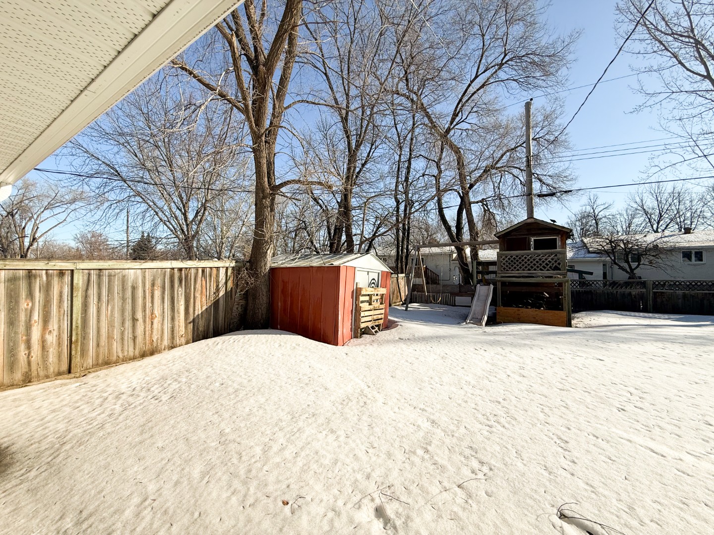 Welcome to this charming 936 sq. ft. bungalow, situated in a desirable location close to JR Walkof school. Step inside to an inviting open-concept main floor that features a maple kitchen, dining room, and living room with an electric fireplace and built-in shelving.