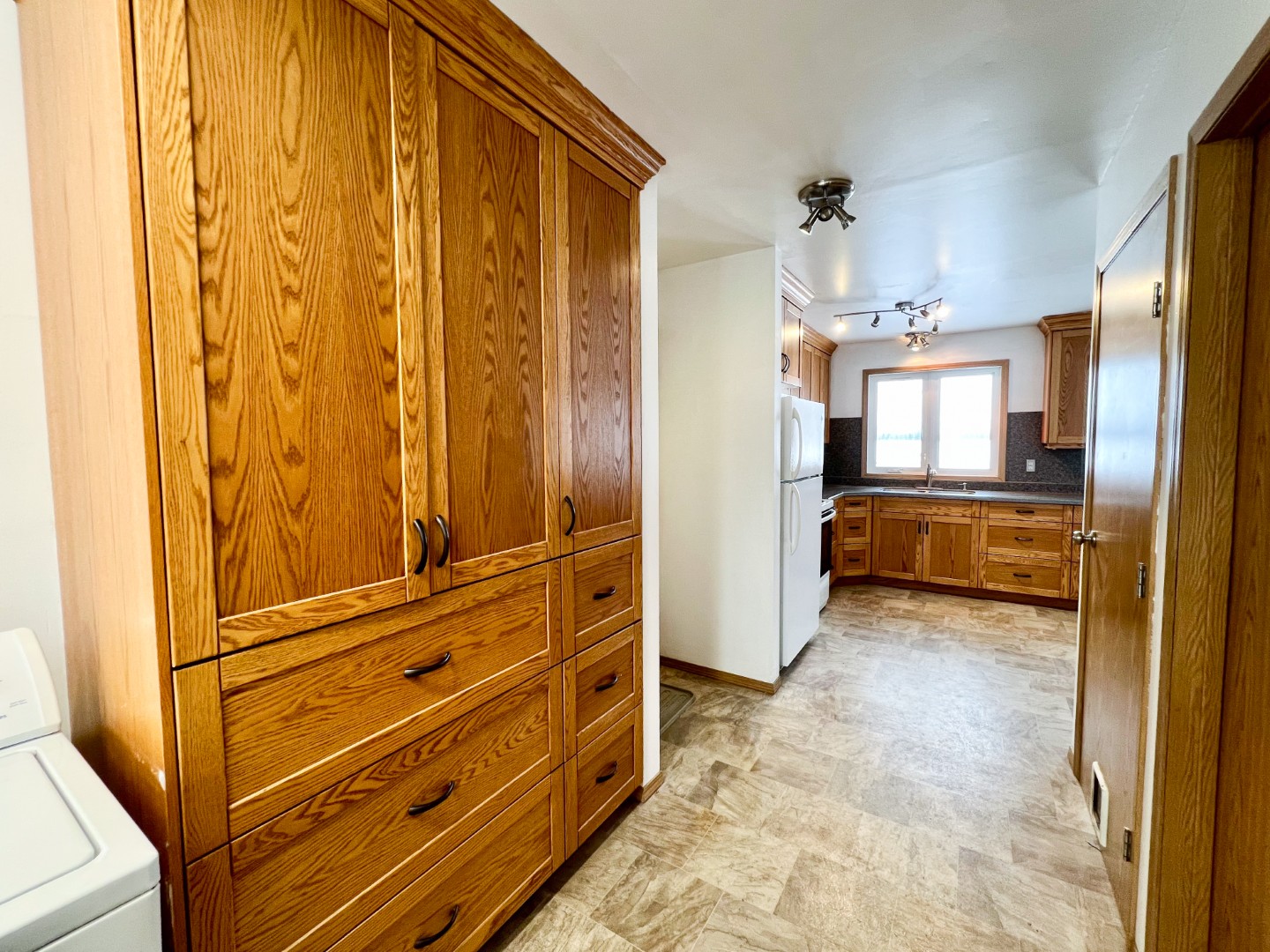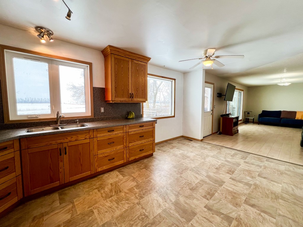 Set on a picturesque 2.5-acre property, this 1,075 sq ft home features updated windows, an oak kitchen, a spacious living room, and the convenience of main-floor laundry with two bedrooms and a four-piece bathroom on the main floor. The basement includes three additional bedrooms, a family room, a three-piece bathroom, and an office with heated floors. Additional features include an attached single-car garage, an insulated workshop with heated floors, and storage sheds, providing excellent space for hobbies, storage, and projects.