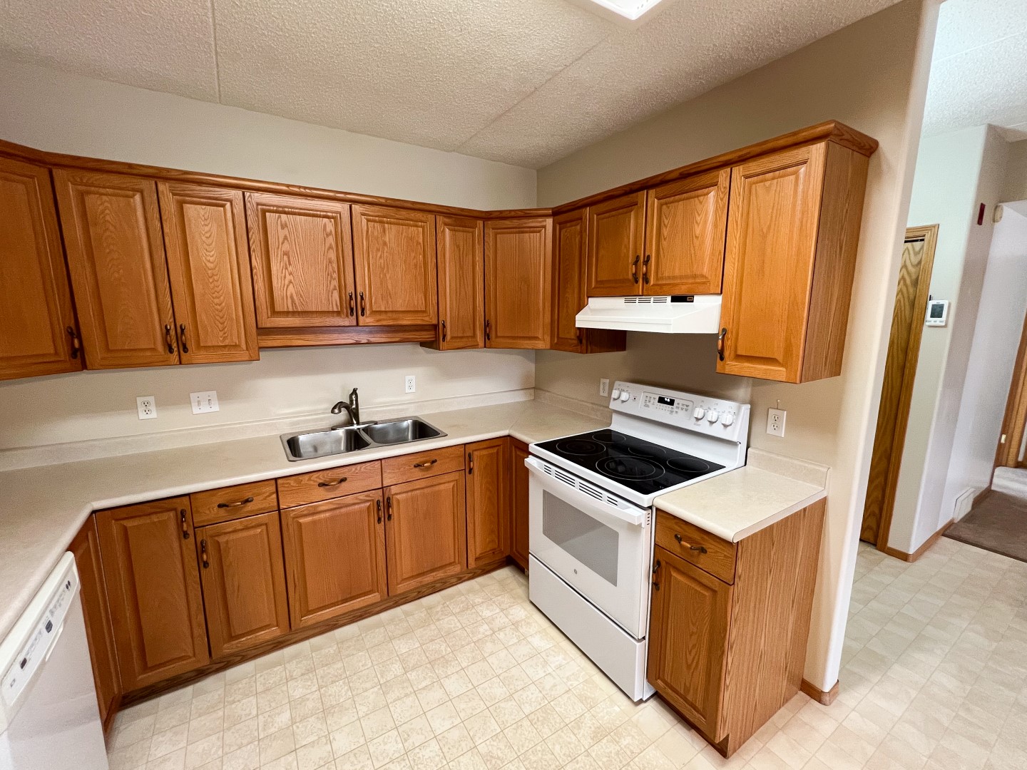 If you are looking to simplify life and live in a community with friends, then a beautiful condominium at Golden West Plaza is the place for you. This 55 plus 4 story condominium building is elegant and well designed. Concrete construction means that the building is extremely safe and quiet. Sprinkler system and elevator also provide safety and comfort for residents needing security and easy access. Unit 303 is conveniently located close to the elevator. You can enjoy relaxing on the large balcony with a great view of downtown and looking onto the green space/picnic area with large trees. Features include 8.5 ft ceilings, a large open concept living area, including a large Oak kitchen (all appliances are included in this sale). Large in-suite laundry/storage room, a generously sized bedroom, and a very large primary bedroom define the rest of the space. A large 4 pc bathroom, as well as a 2 pc ensuite, are designed for easy access and privacy. Although this 1002 sq ft condo has plenty of room for family to visit, you also have full access to not one, but two large common rooms for gatherings and events. If you also love to park your vehicle indoors, this building has an underground, secure and heated parkade for safety and convenience. There is even a Tim Hortons just steps away! Book your showing today at unit 303.