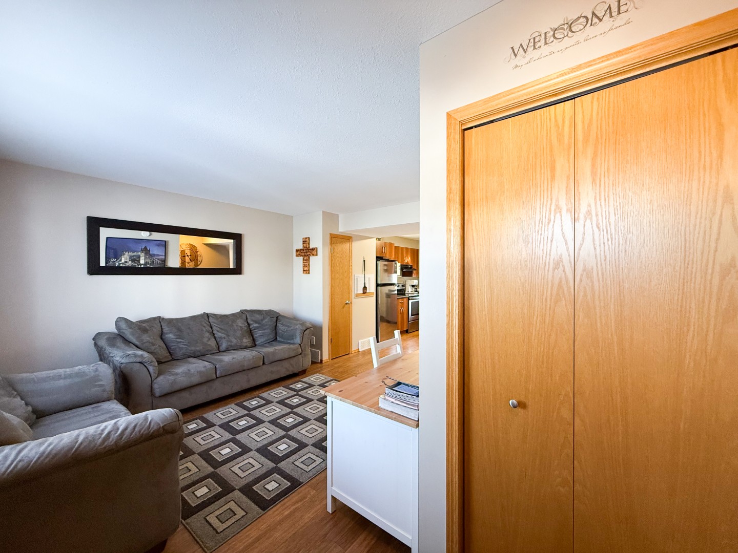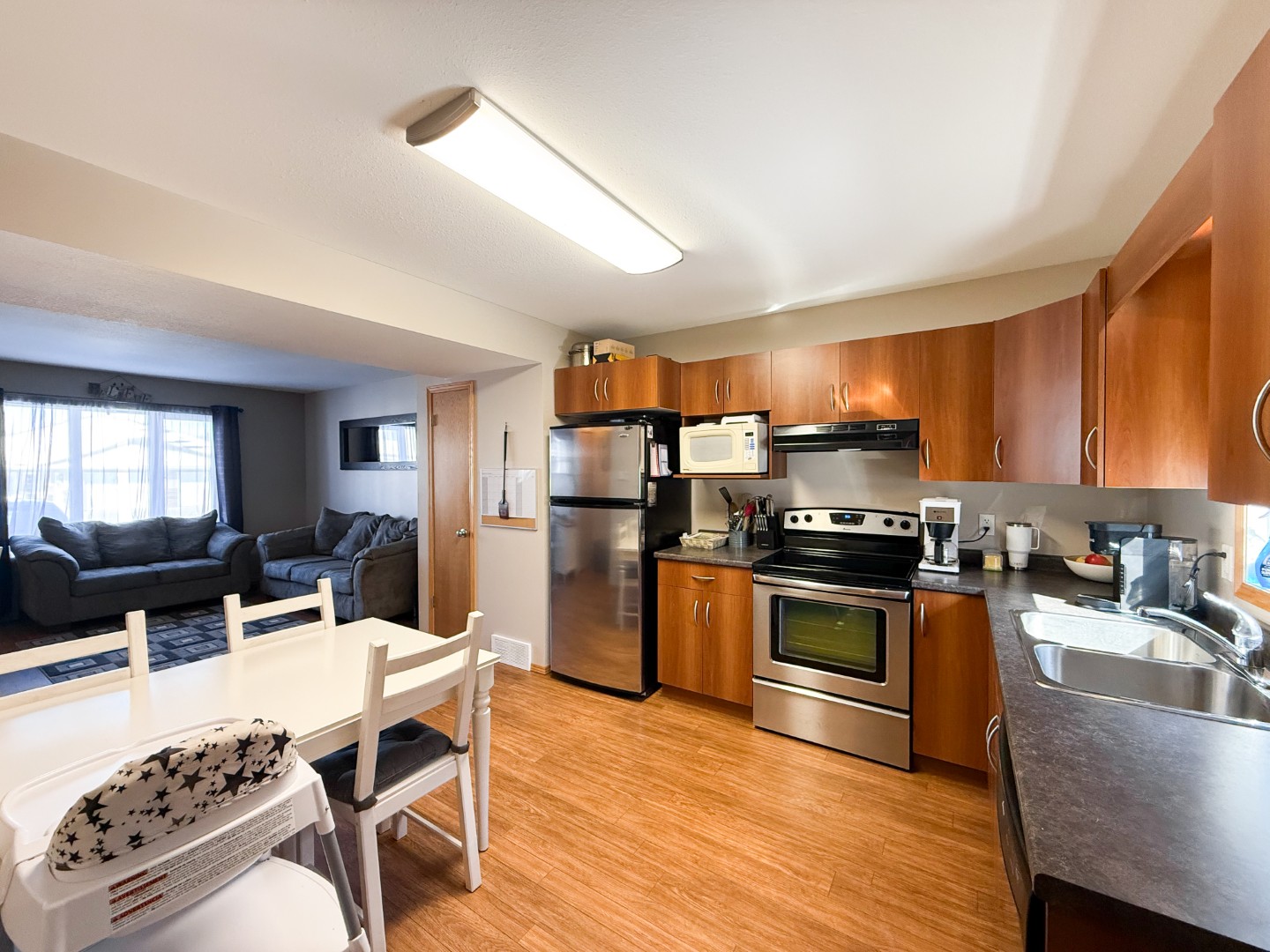 Ideal for the first time home buyer, this 928 sq ft townhome offers a comfortable and practical layout! The main floor features a cinnamon melamine kitchen with a pantry and dishwasher, along with a dining area and living room. A back door leads to a 9’6” x 9’6” deck overlooking the yard, which is fenced on one side. Upstairs, you’ll find two spacious bedrooms and a full 4-piece bathroom. The mostly finished basement adds extra living space with a bedroom, rec area, laundry/mechanical room, under-stair storage, and a 3-piece bathroom.