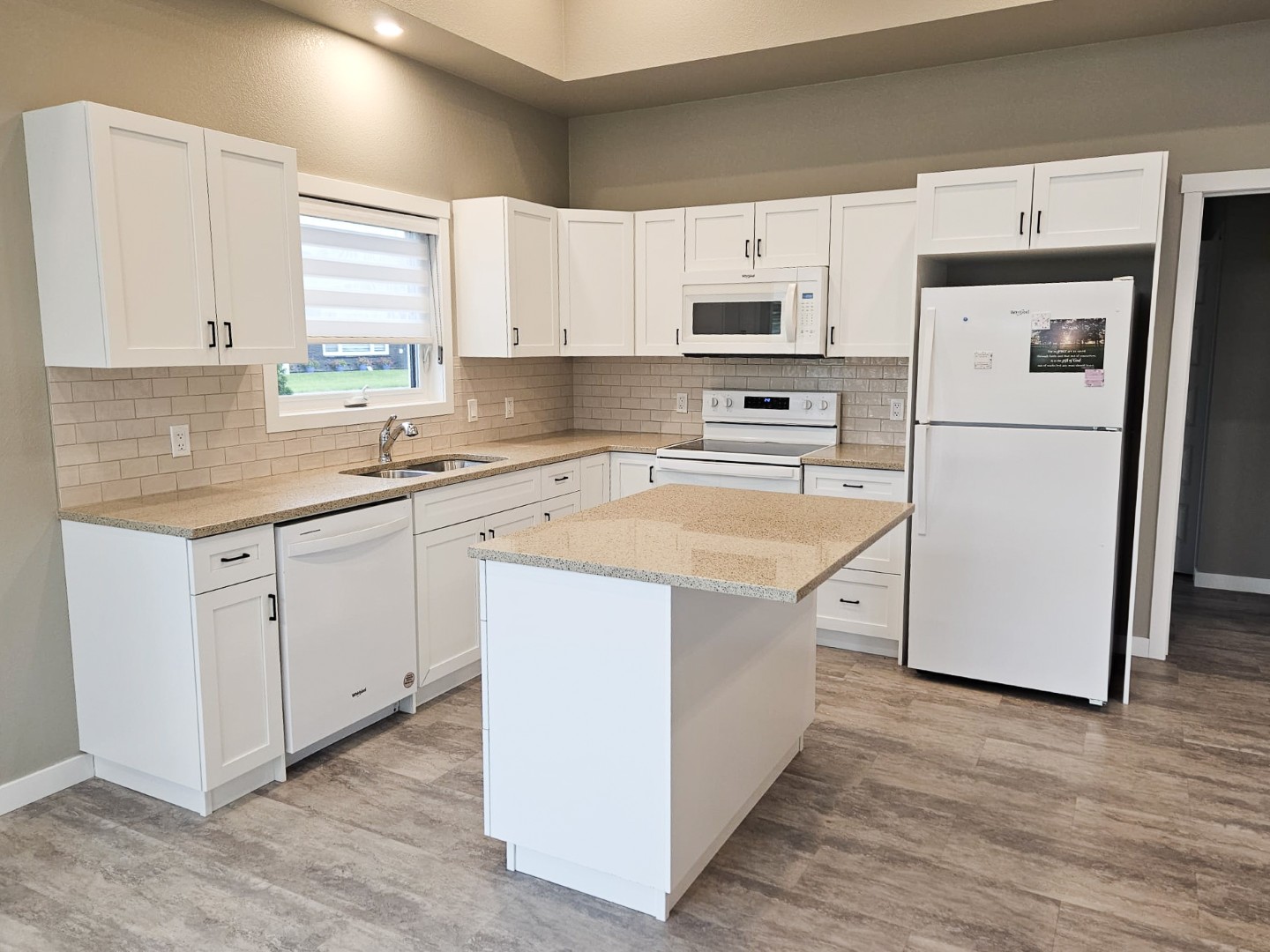 Fantastic home on owned land with open floor plan and beautiful white kitchen with tiled backsplash! Includes 5 appliances and a supersized, 14’ x 28’ painted and floor-heated garage. All this only a minute from Winkler! Call now to make this yours.