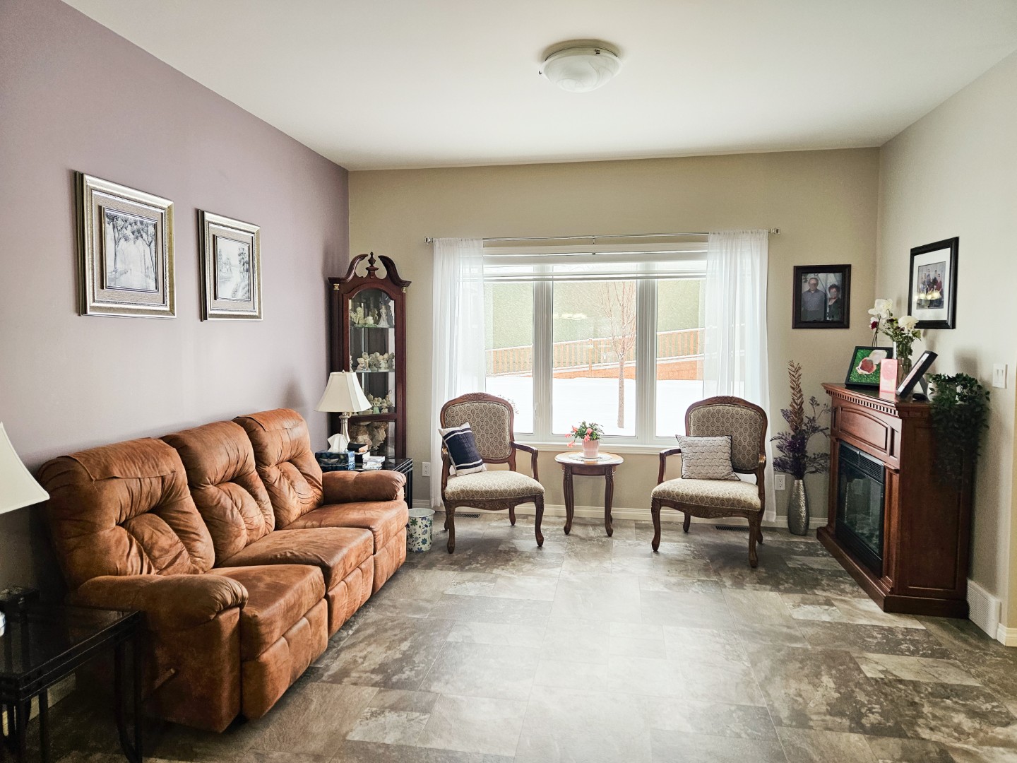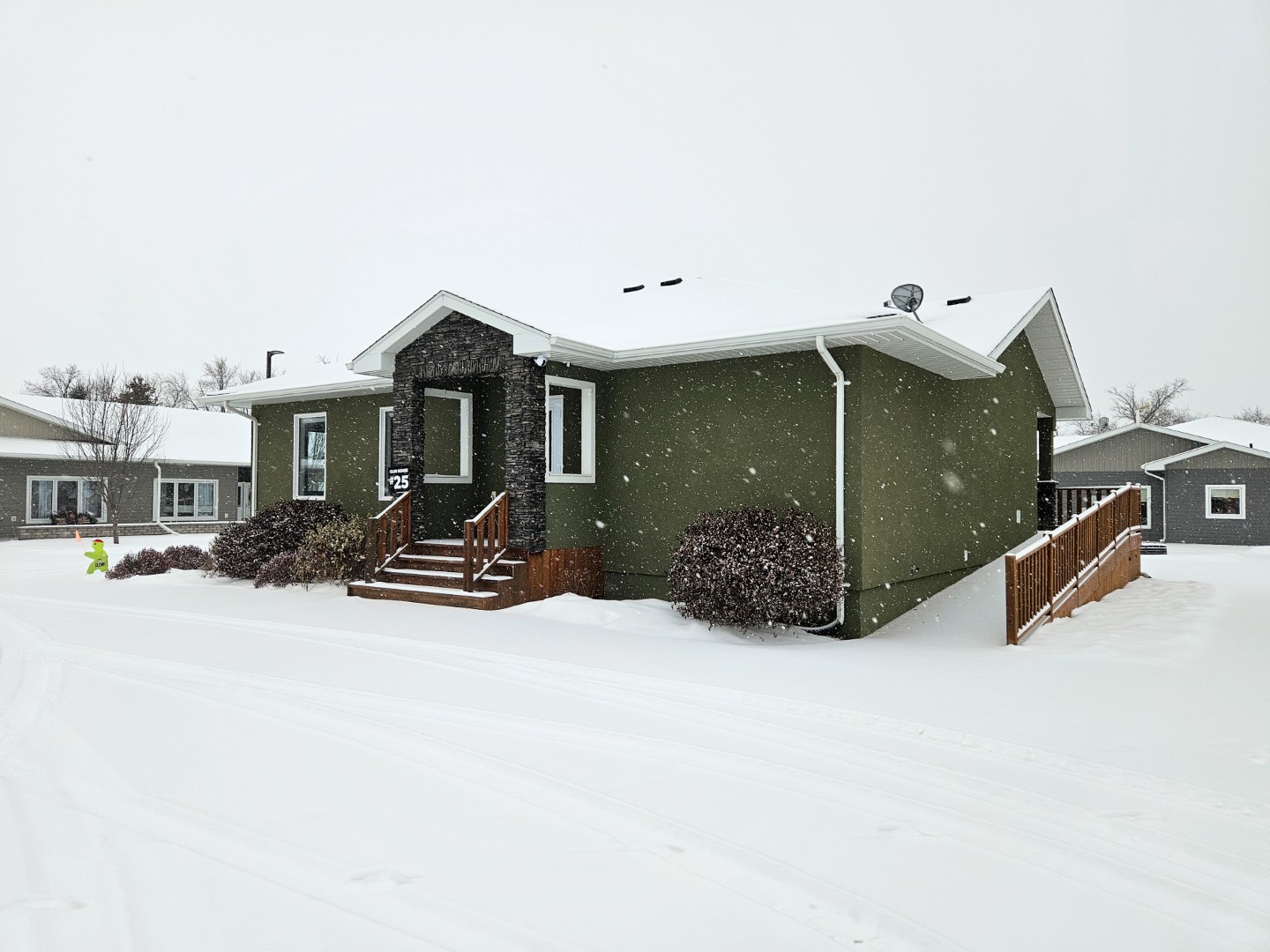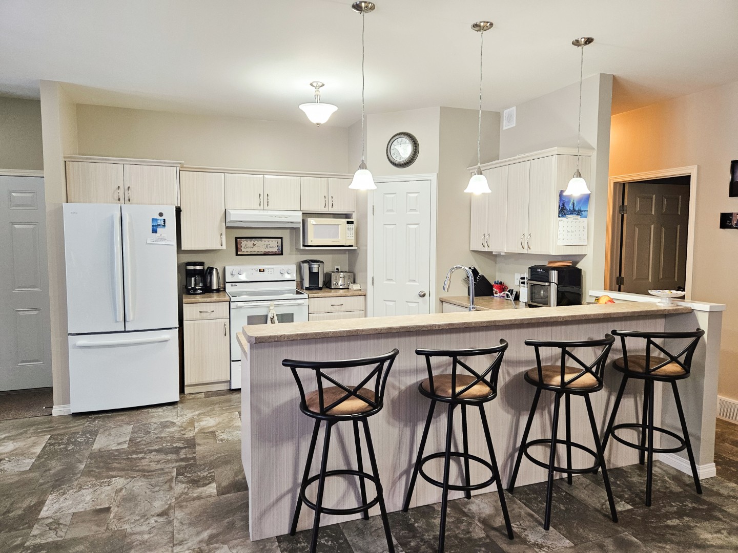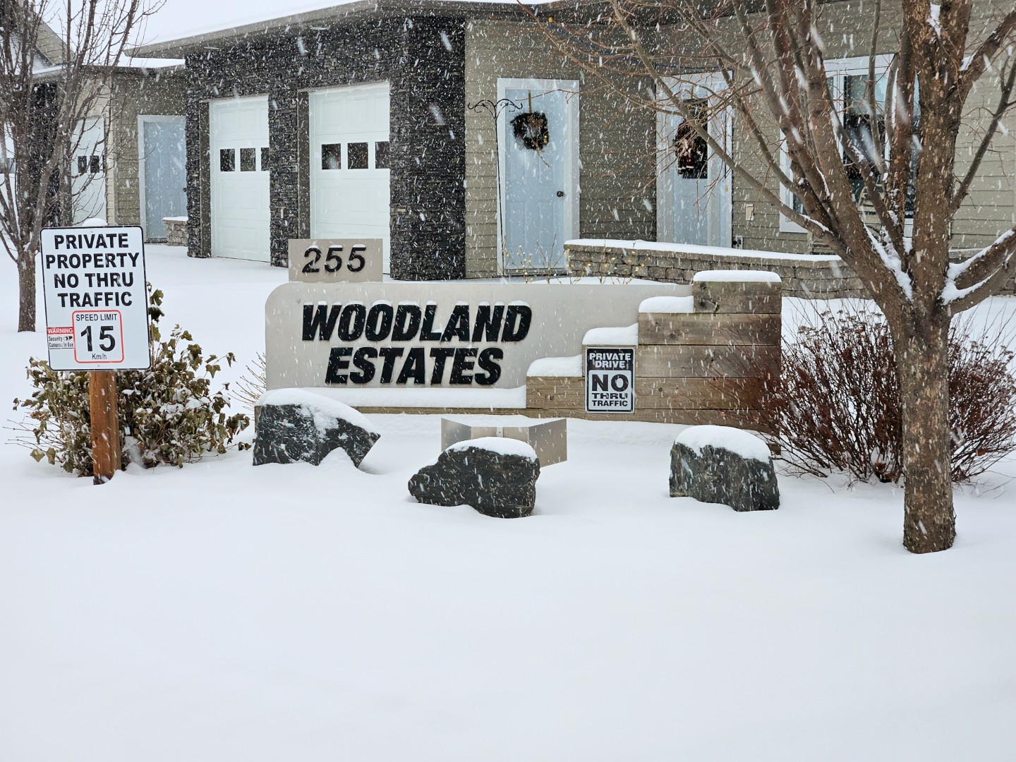 Rarely available 55+ condo in desirable Woodland Estates! This spacious 1,135 sq ft unit features a comfortable layout with a large primary bedroom complete with a 2-piece ensuite and walk-in closet, plus a bright den/family room that opens seamlessly into the dining and living areas. The main bathroom is a convenient 3-piece equipped with a low-clearance shower. The inviting vinyl-wrapped kitchen offers a corner pantry and a peninsula with seating for four, perfect for casual meals or entertaining. Additional highlights include a heated garage, high-efficiency gas furnace, fibre-optic internet, a newer hot water tank, and a concrete back deck with storage shed. Residents also enjoy access to the well-appointed clubhouse featuring a full kitchen, cozy gas fireplace, pool table, and main-floor washroom. The lower level offers exercise equipment, a guest suite, and a 4-piece washroom available for resident use. Fridge, stove, dishwasher, washer, and dryer are all included. This is a wonderful place to call home, and units here don’t come up often. Call today to view this home!