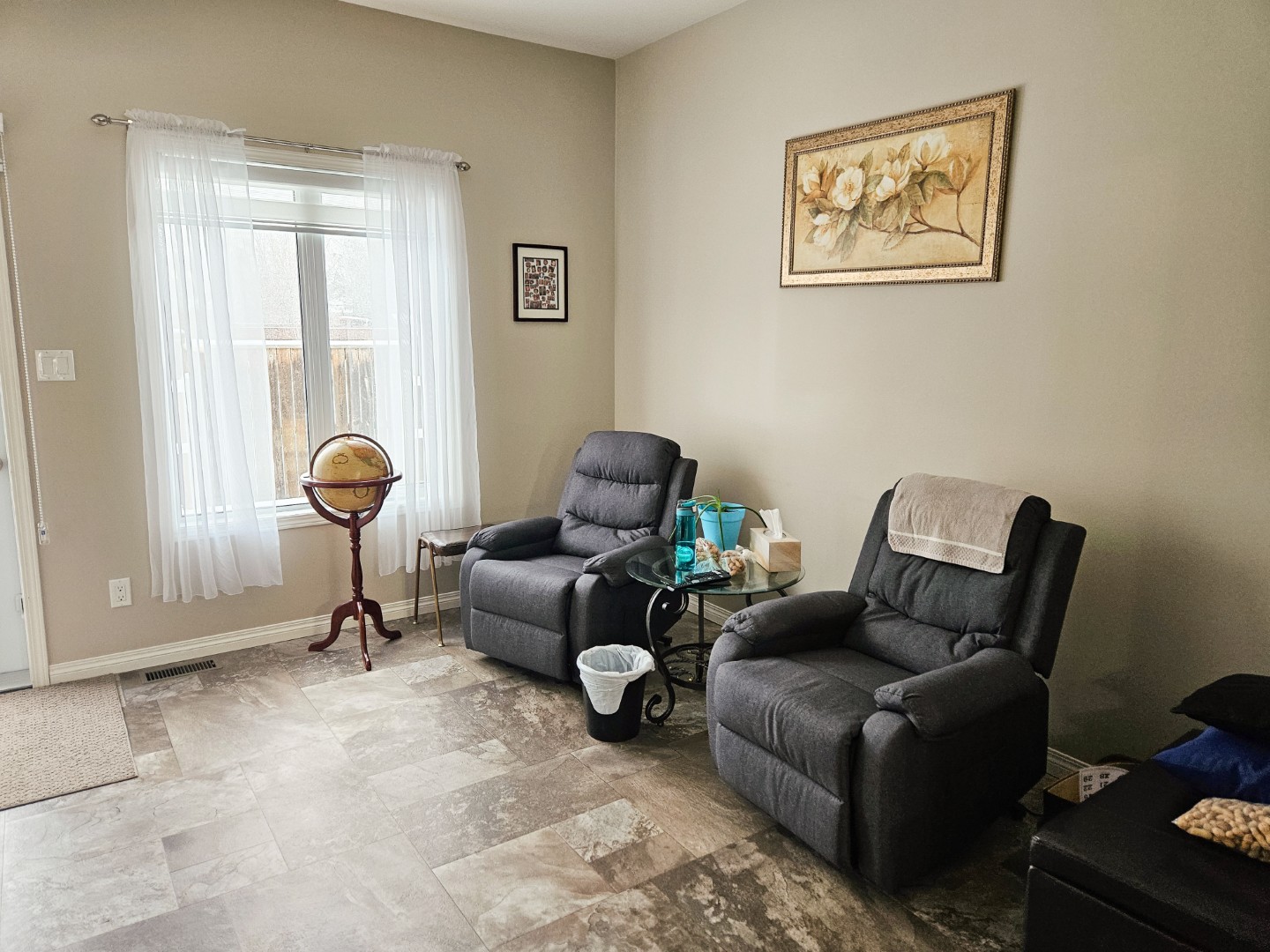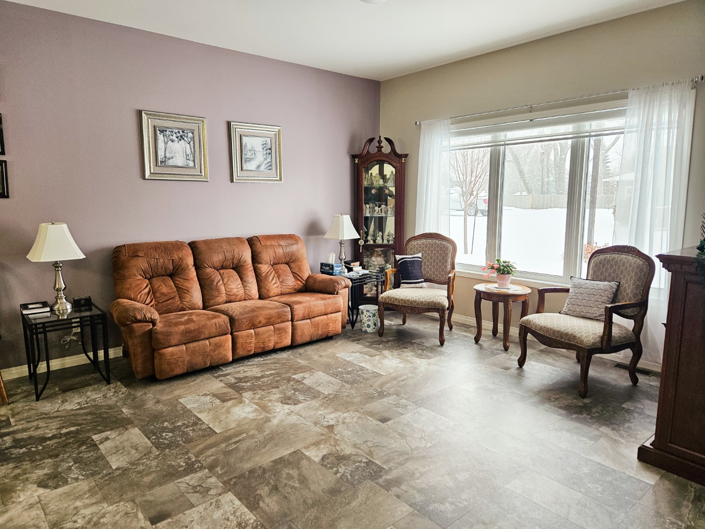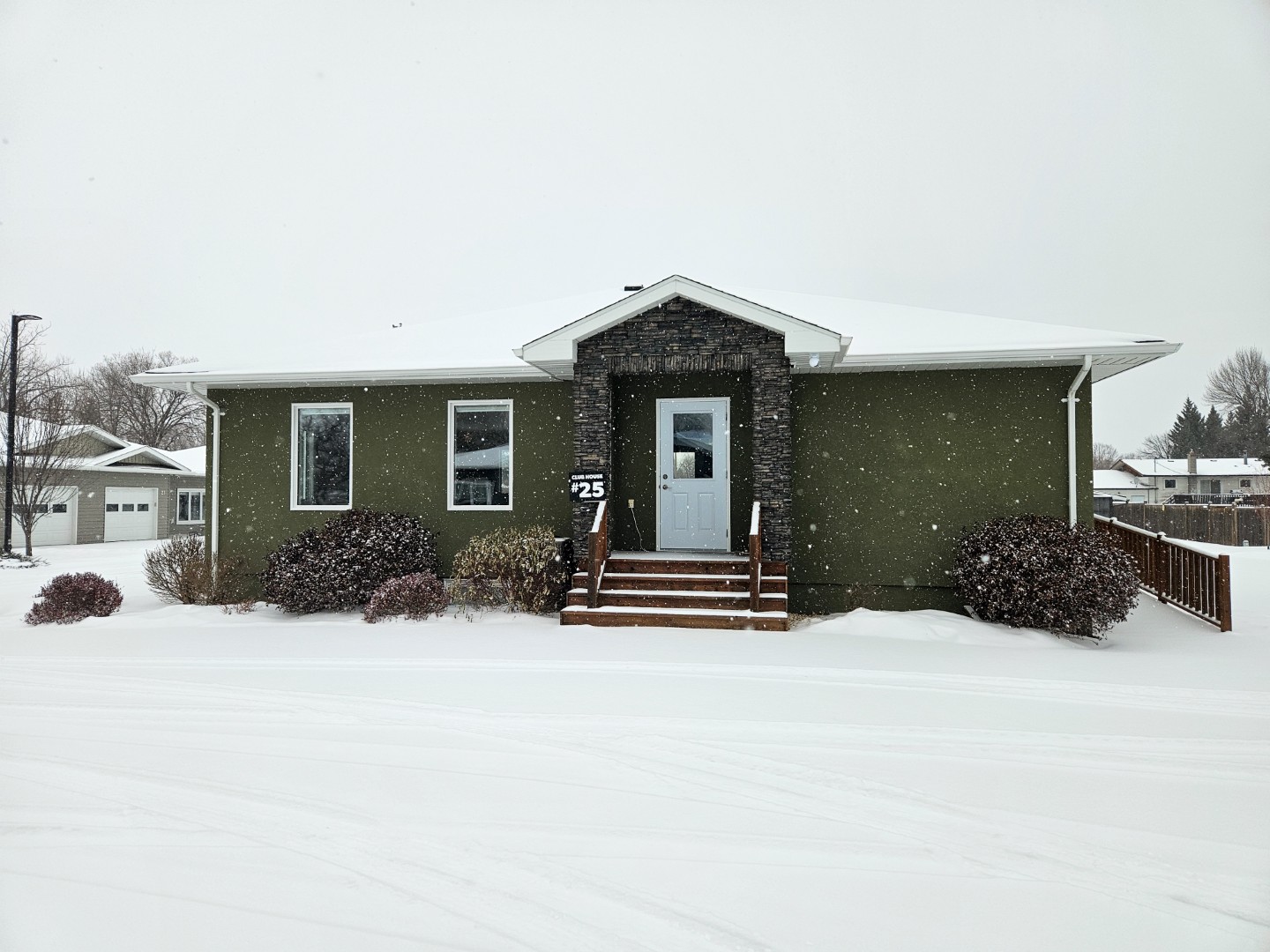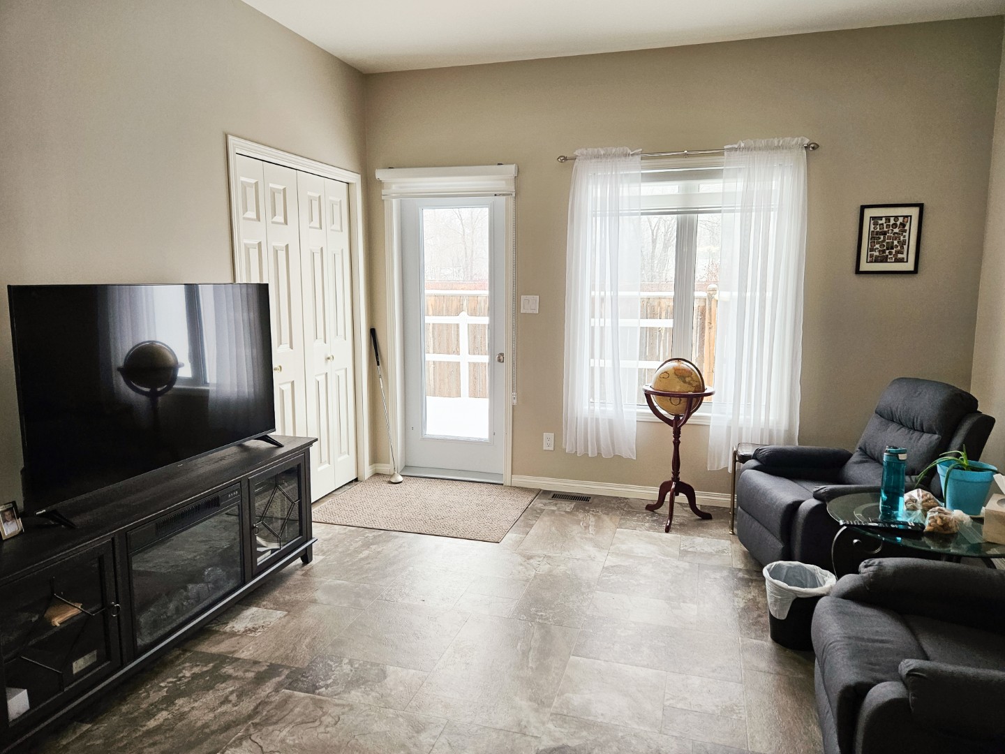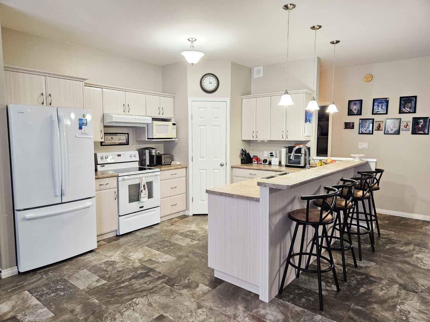 Rarely available 55+ condo in desirable Woodland Estates! This spacious 1,135 sq ft unit features a comfortable layout with a large primary bedroom complete with a 2-piece ensuite and walk-in closet, plus a bright den/family room that opens seamlessly into the dining and living areas. The main bathroom is a convenient 3-piece equipped with a low-clearance shower. The inviting vinyl-wrapped kitchen offers a corner pantry and a peninsula with seating for four, perfect for casual meals or entertaining. Additional highlights include a heated garage, high-efficiency gas furnace, fibre-optic internet, a newer hot water tank, and a concrete back deck with storage shed. Residents also enjoy access to the well-appointed clubhouse featuring a full kitchen, cozy gas fireplace, pool table, and main-floor washroom. The lower level offers exercise equipment, a guest suite, and a 4-piece washroom available for resident use. Fridge, stove, dishwasher, washer, and dryer are all included. This is a wonderful place to call home, and units here don’t come up often. Call today to view this home!