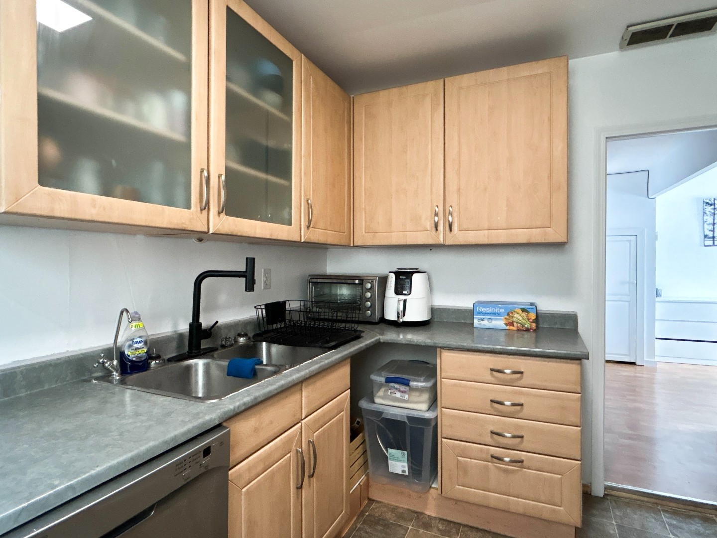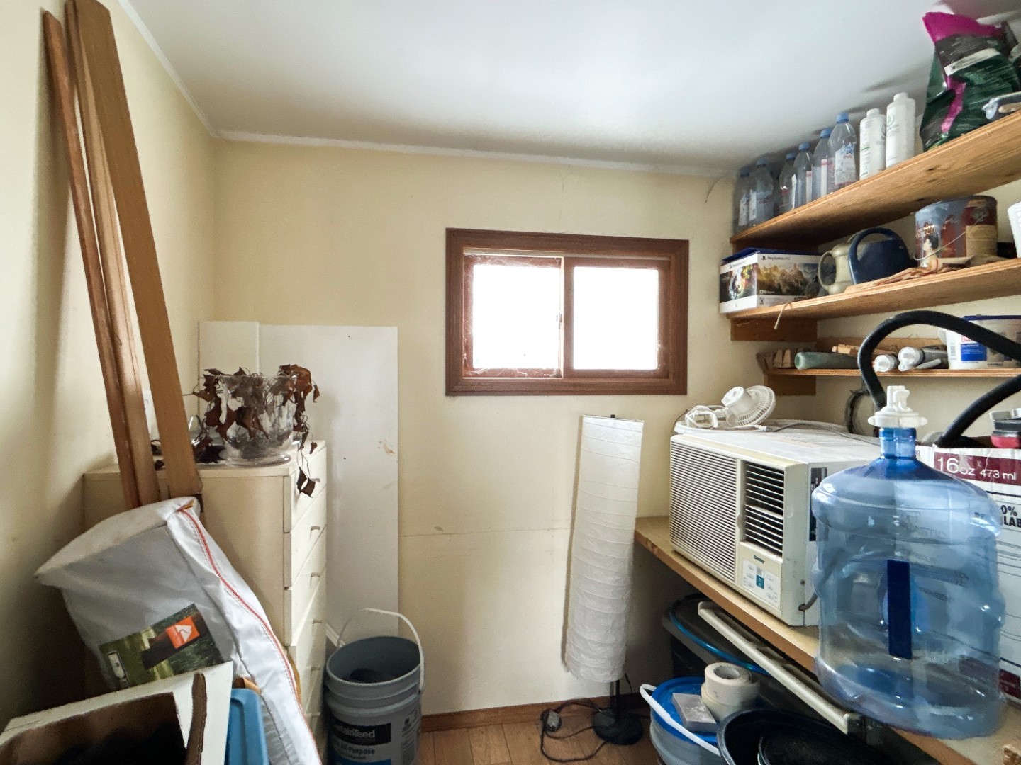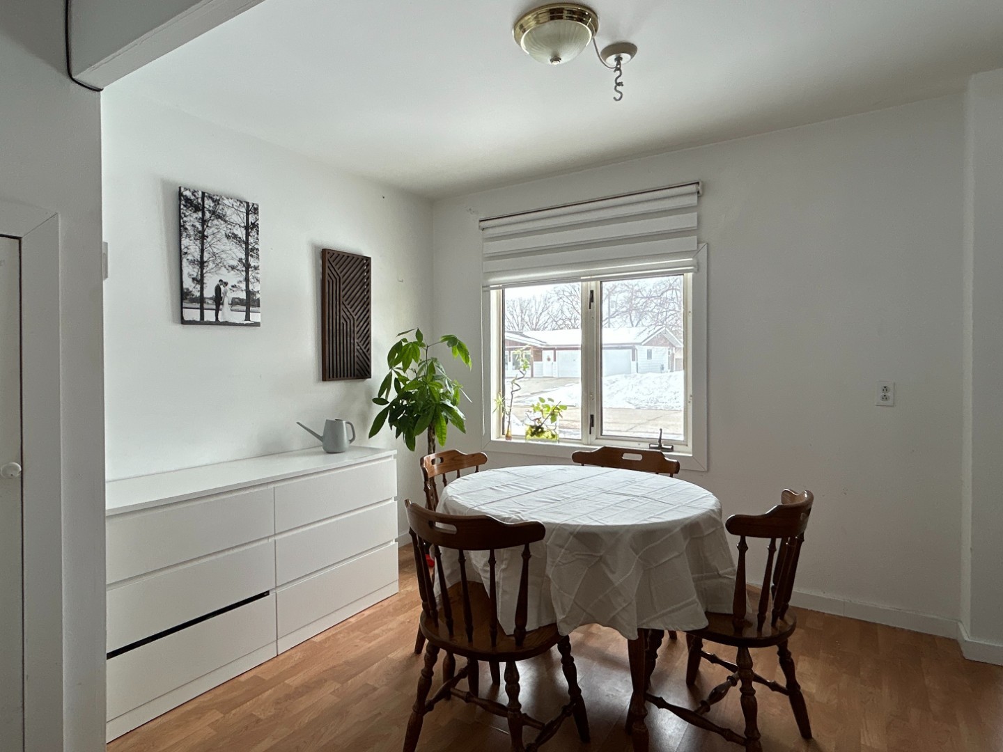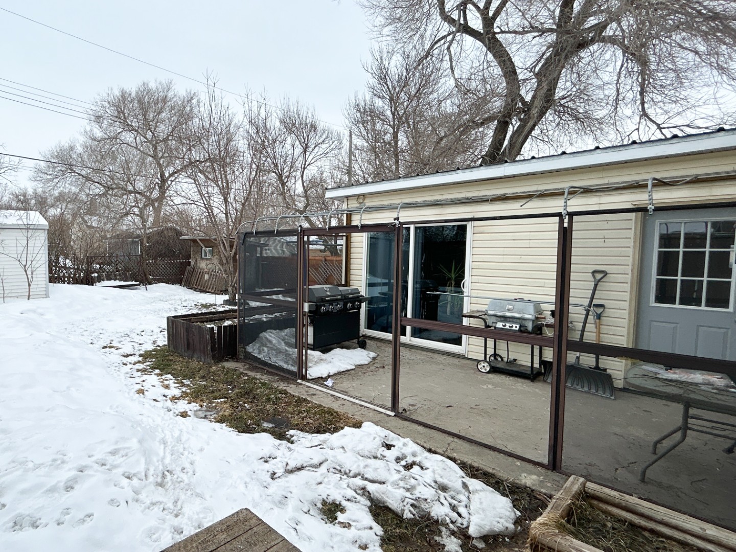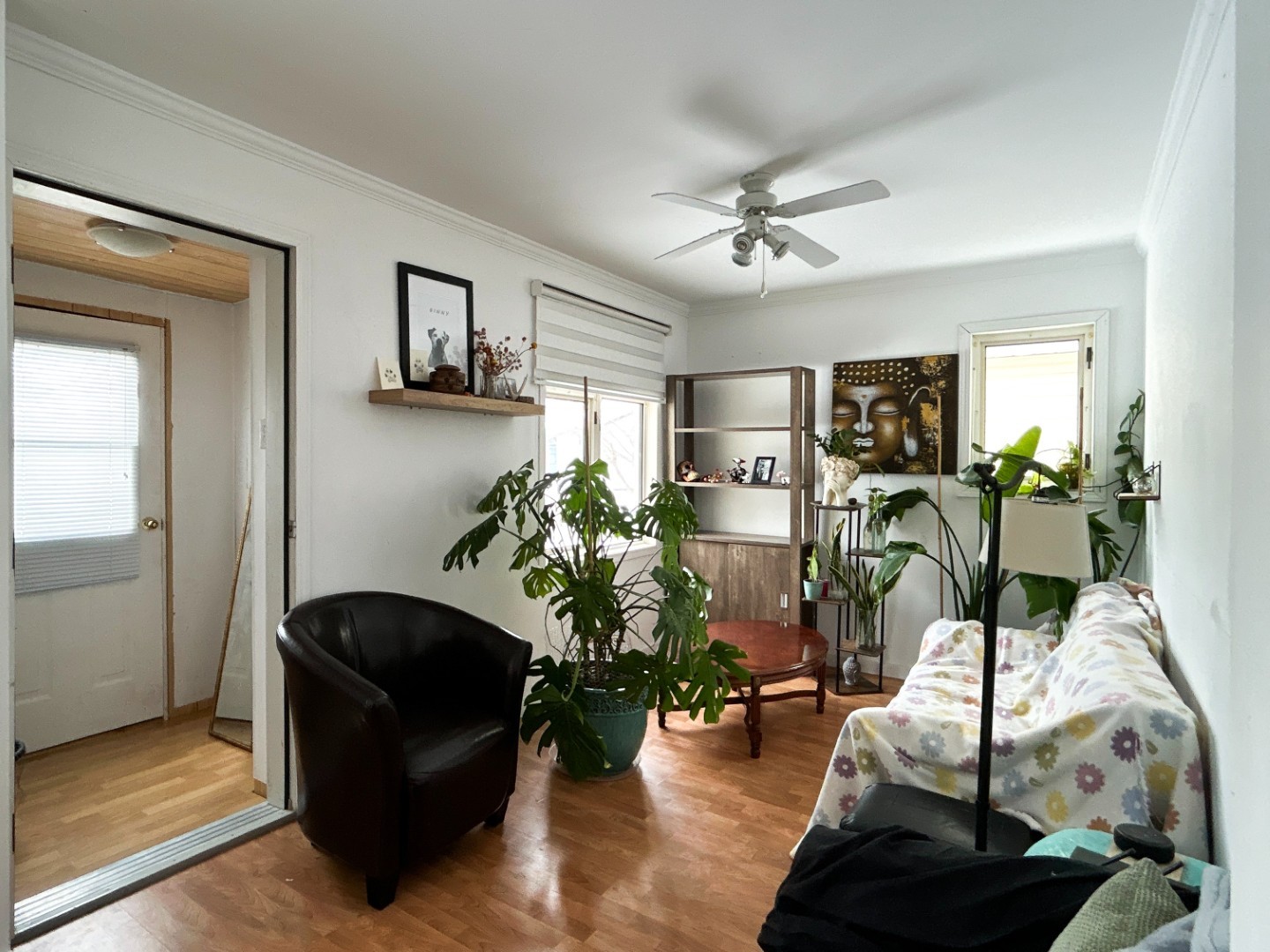 This cozy 1½ storey home is located within walking distance to shopping and elementary school! Step through the front door to find the open and bright living room, with adjacent dining room, a self-contained kitchen, and a 4-piece bathroom. The primary bedroom has patio doors to the deck. A guest bedroom and a spacious laundry room complete the main floor.