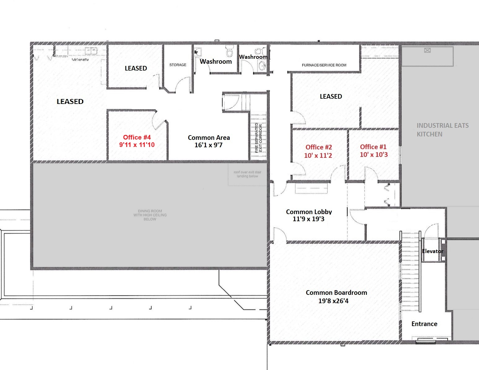 Individual 2nd floor offices for lease, located next door to Industrial Eats and The Bunker! Currently 2 offices available for immediate possession. Leases are on a month-to-month basis, and price includes utilities, wi-fi, cleaning of common areas, access to common boardroom, lobby, washrooms, and use of the common elevator. Ample parking available in the shared concrete parking lot. These offices are a great option for small businesses and professionals, contact your Realtor for a tour!