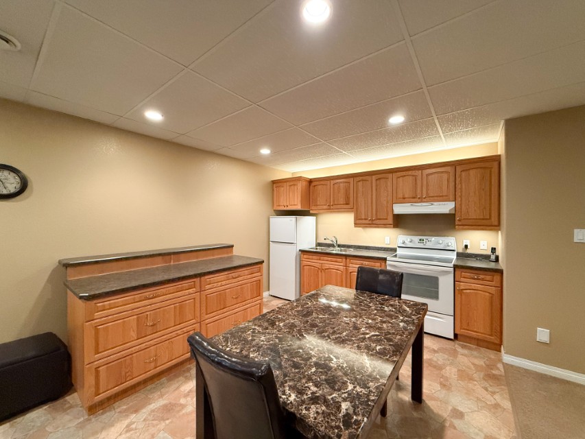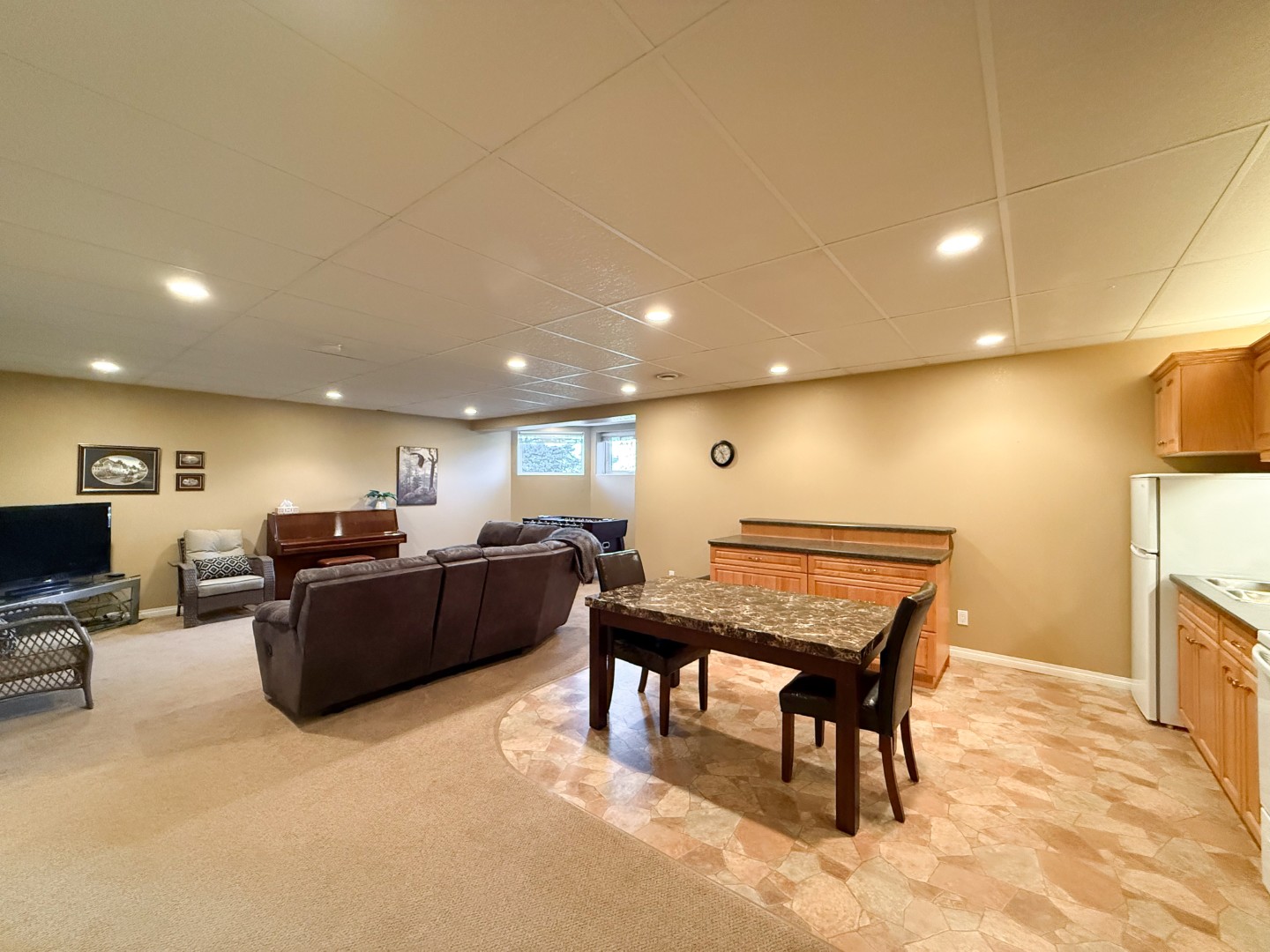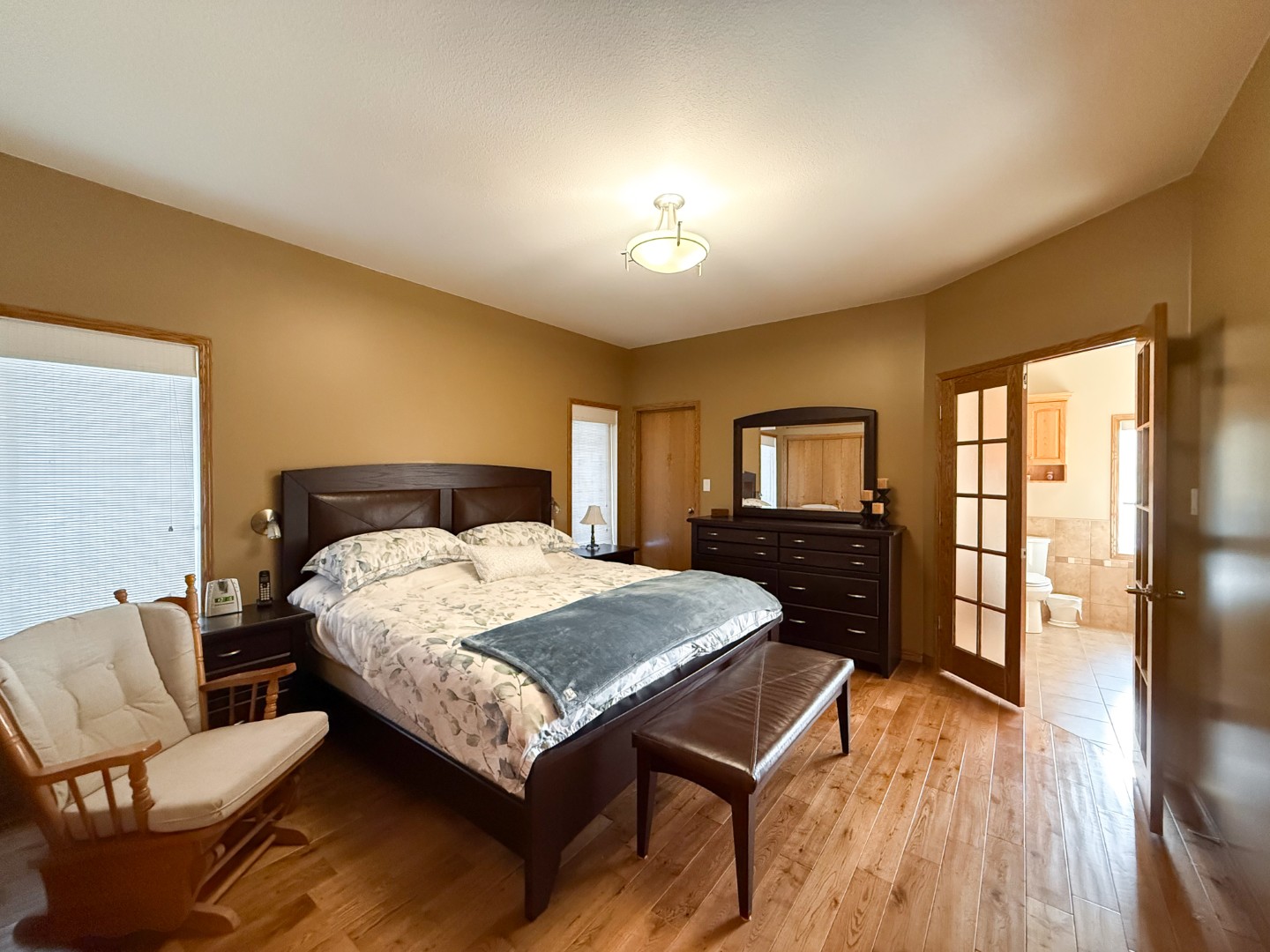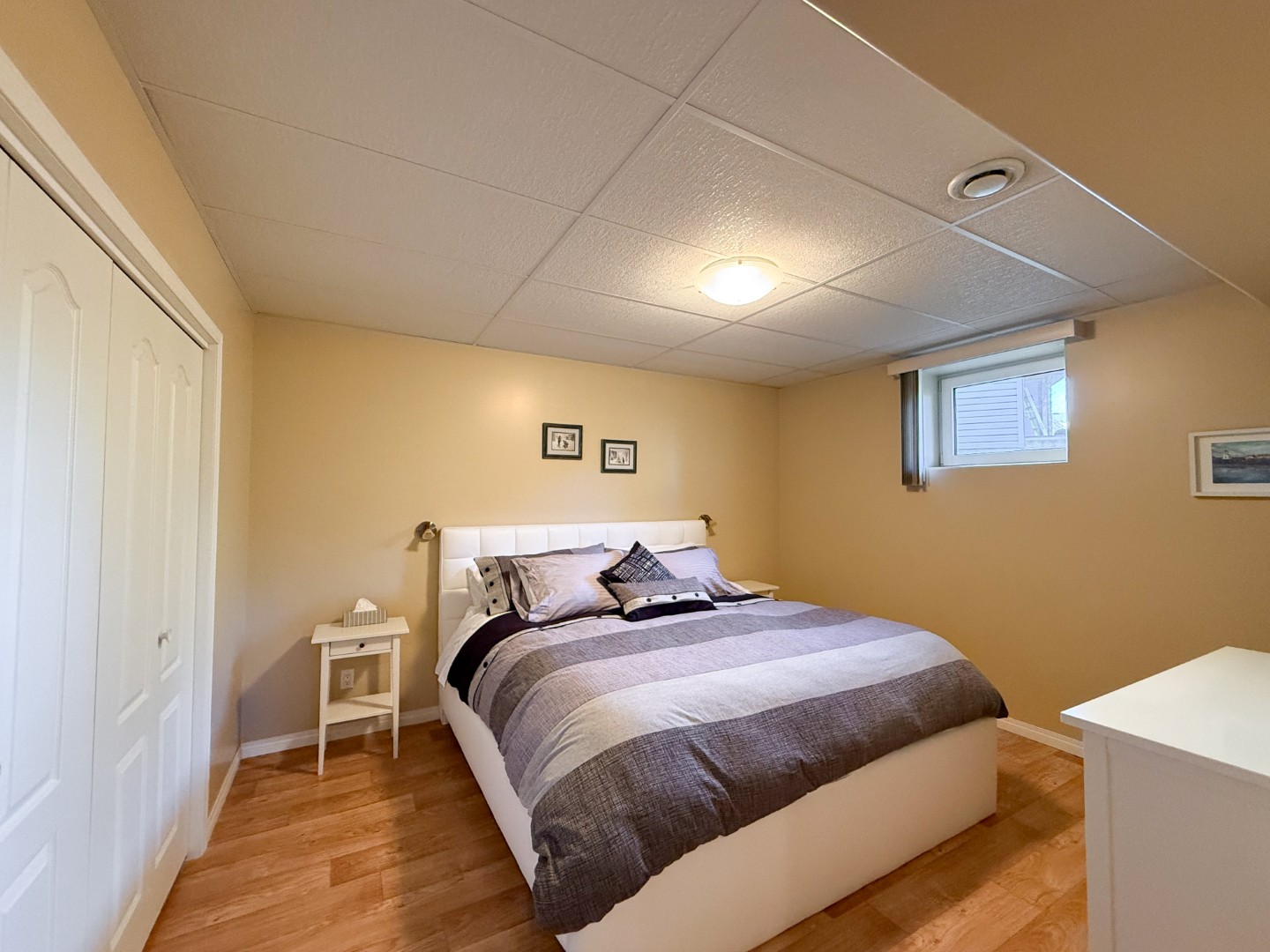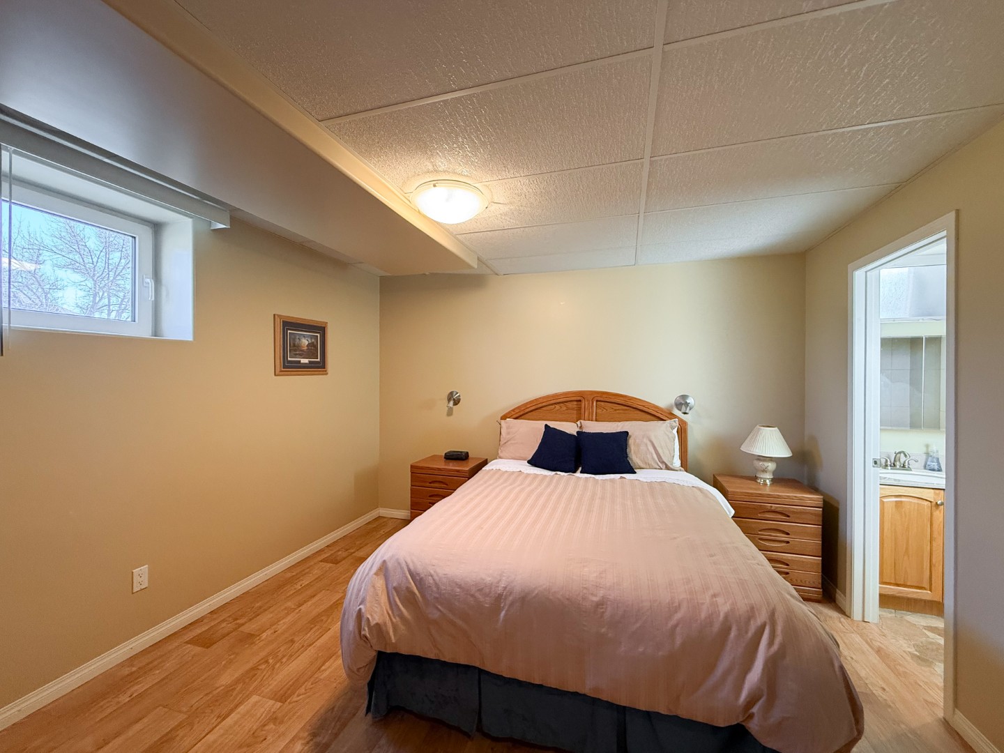 This custom-built home showcases exceptional craftsmanship with generous living spaces and wide staircases! The spacious oak kitchen features an island, granite countertops, an elevated dishwasher and oven, a corner pantry, and a large dining area that opens to the living room, perfect for hosting family and friends. The primary bedroom offers two closets plus a walk-in, along with a luxurious 4-piece ensuite complete with heated tile flooring, a tiled shower, and a jacuzzi tub. The main floor includes solid oak hardwood in the living, dining, and bedroom areas, with duraceramic tile in the kitchen, hallways, and entrance. The fully finished basement includes a guest suite with a 3-piece ensuite and walk-in closet, two additional bedrooms, and an inviting rec room with a games area and kitchenette. The impressive garage features epoxy floors, in-floor heat, a 2-piece washroom, and a workshop ideal for hobbyists. Outside, a large concrete driveway offers RV parking, a 30 Amp outlet, and a generator hookup. The covered deck overlooks the patio, firepit area, shed, and garden. Call now to book your private tour of this stunning home!