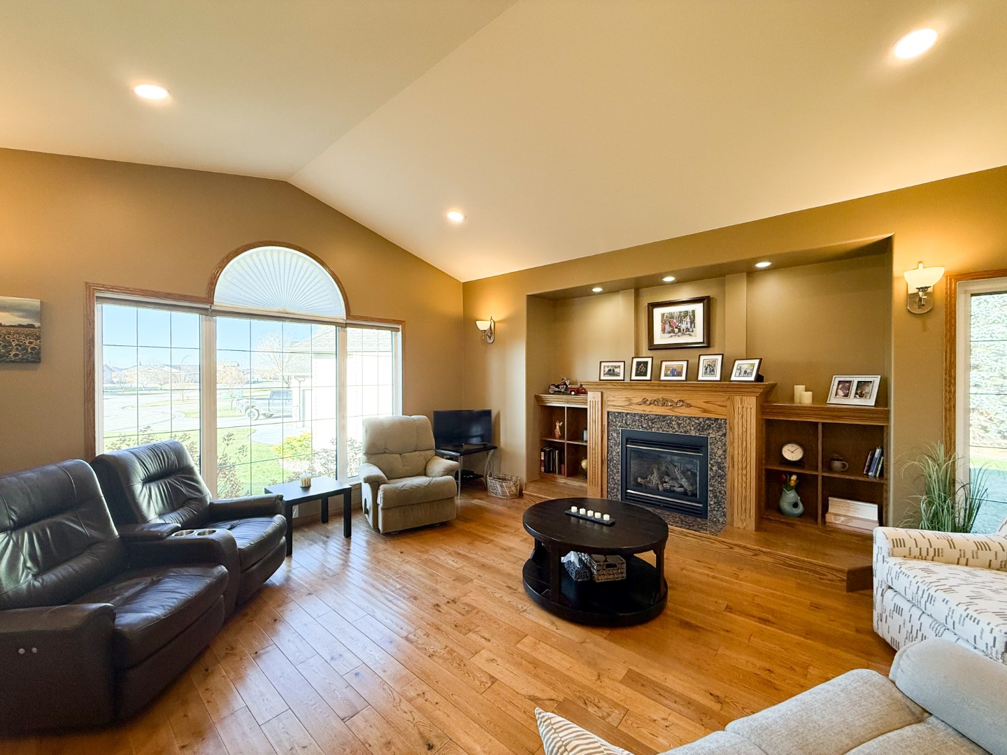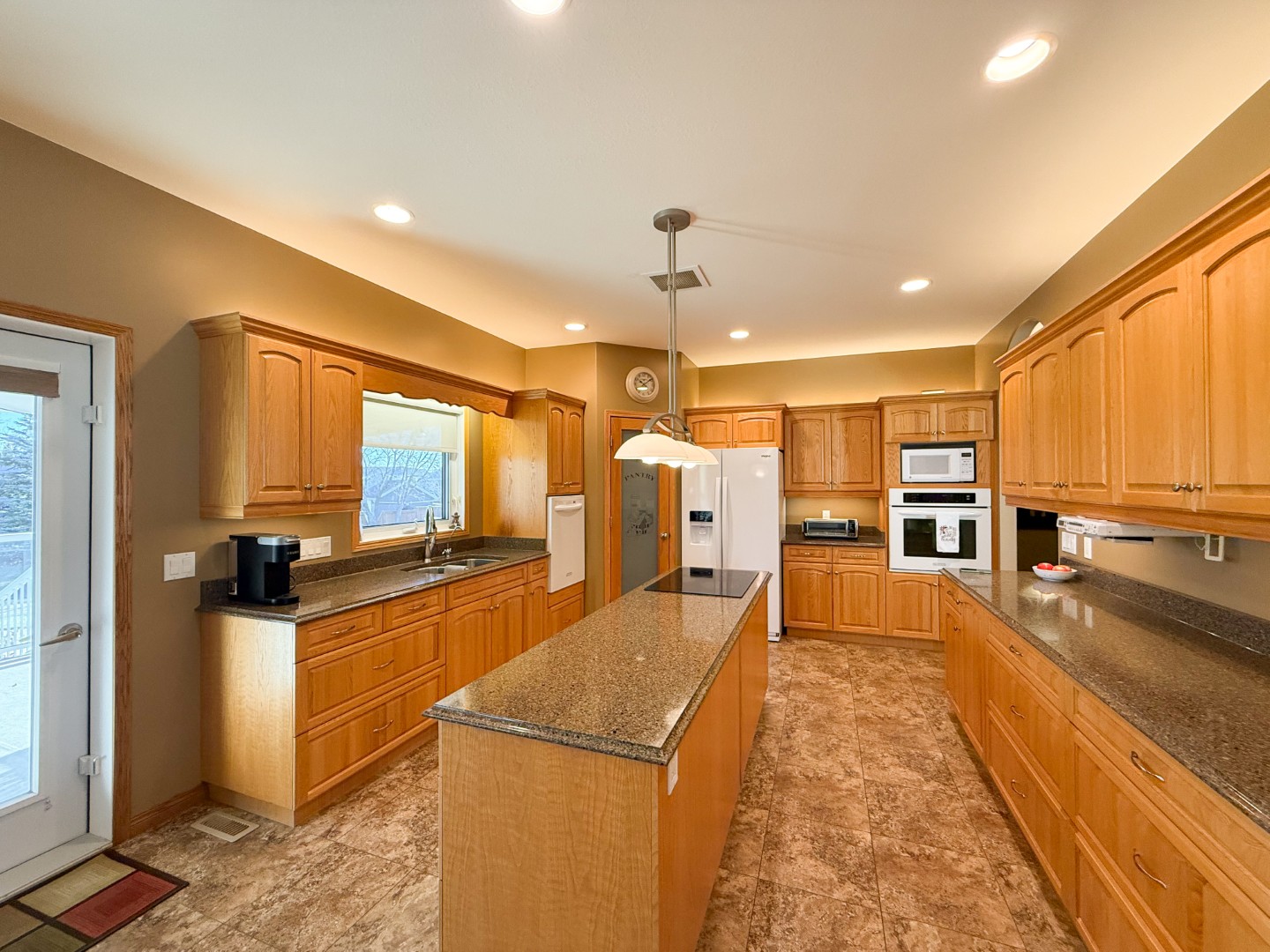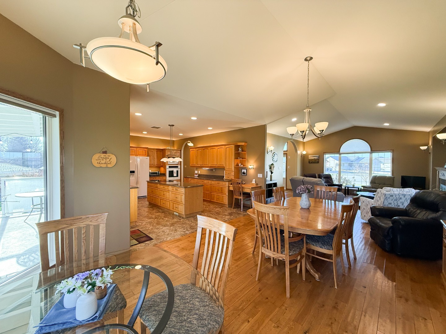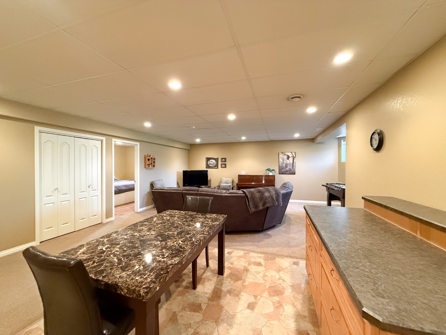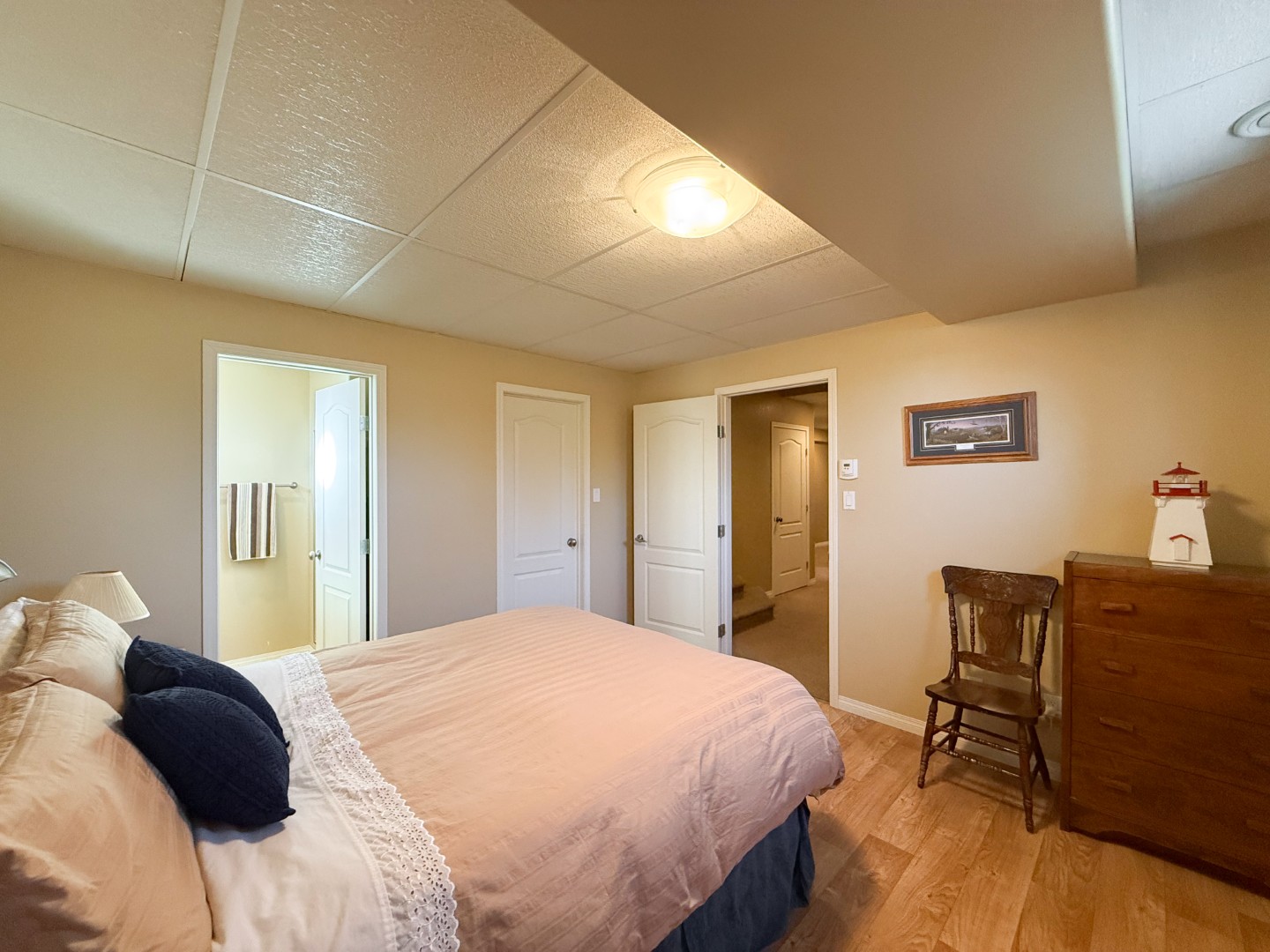 This custom-built home showcases exceptional craftsmanship with generous living spaces and wide staircases! The spacious oak kitchen features an island, granite countertops, an elevated dishwasher and oven, a corner pantry, and a large dining area that opens to the living room, perfect for hosting family and friends. The primary bedroom offers two closets plus a walk-in, along with a luxurious 4-piece ensuite complete with heated tile flooring, a tiled shower, and a jacuzzi tub. The main floor includes solid oak hardwood in the living, dining, and bedroom areas, with duraceramic tile in the kitchen, hallways, and entrance. The fully finished basement includes a guest suite with a 3-piece ensuite and walk-in closet, two additional bedrooms, and an inviting rec room with a games area and kitchenette. The impressive garage features epoxy floors, in-floor heat, a 2-piece washroom, and a workshop ideal for hobbyists. Outside, a large concrete driveway offers RV parking, a 30 Amp outlet, and a generator hookup. The covered deck overlooks the patio, firepit area, shed, and garden. Call now to book your private tour of this stunning home!