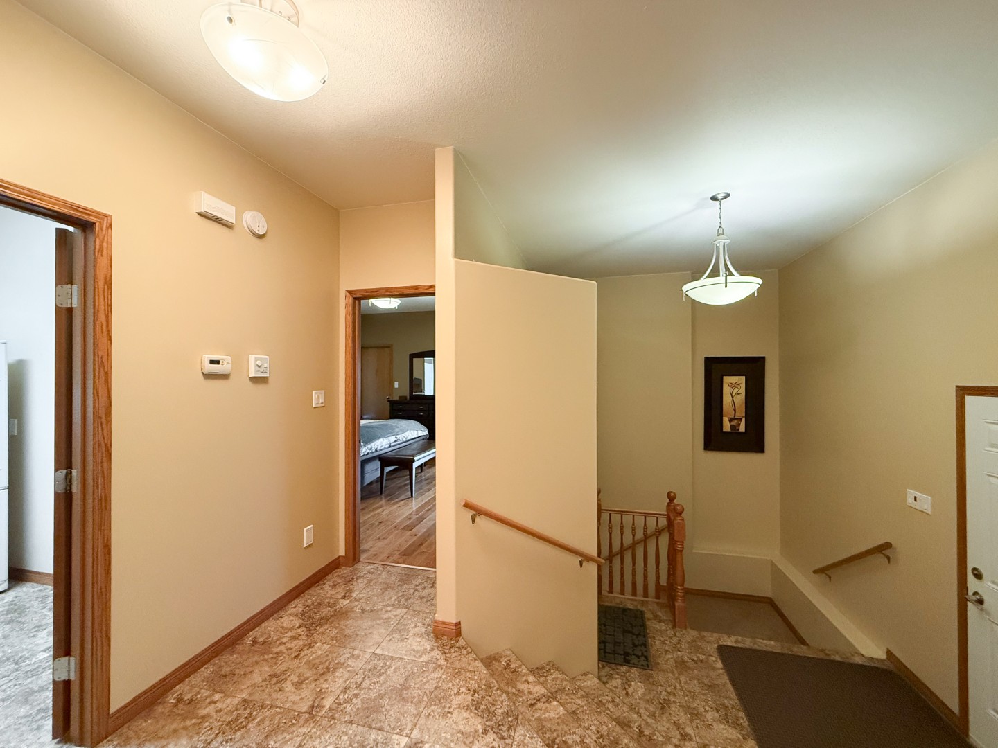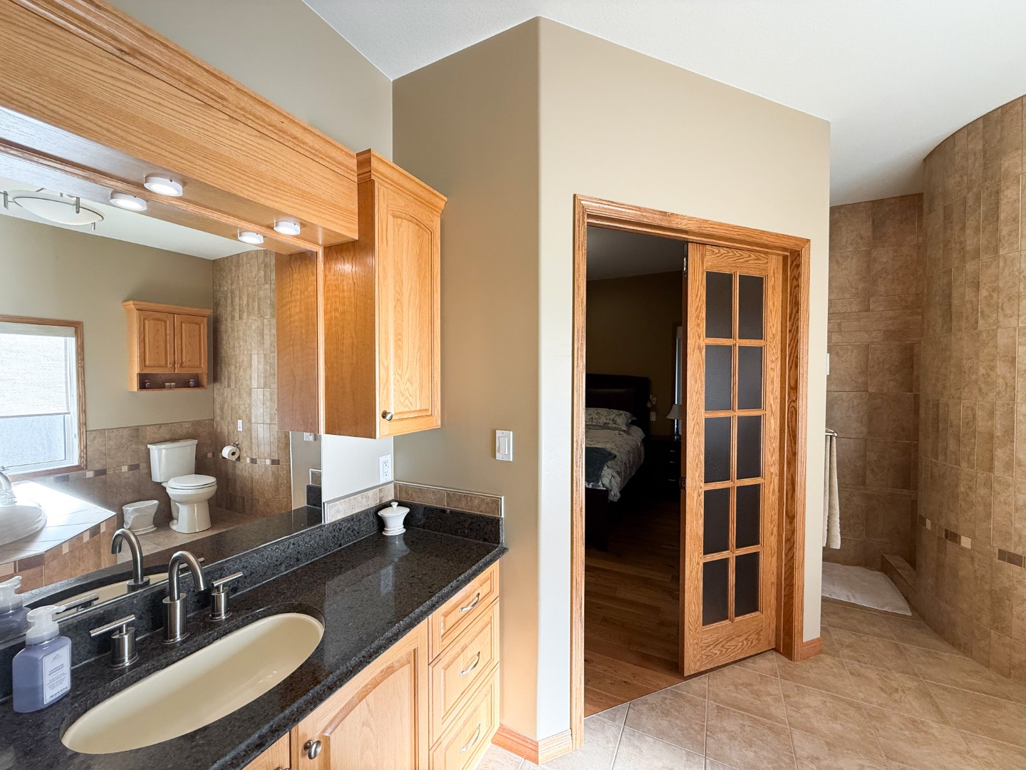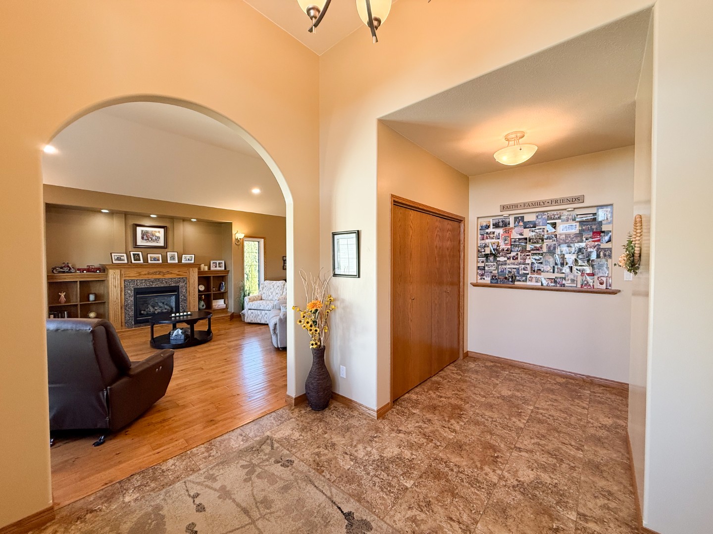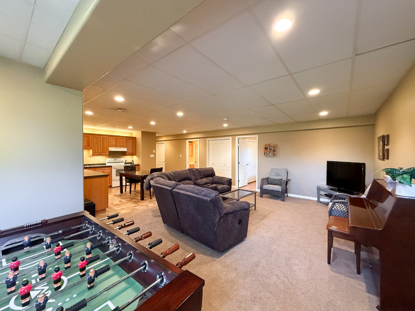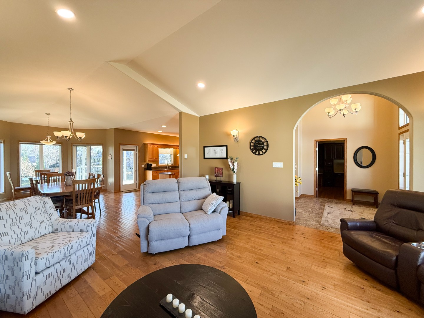 This custom-built home showcases exceptional craftsmanship with generous living spaces and wide staircases! The spacious oak kitchen features an island, granite countertops, an elevated dishwasher and oven, a corner pantry, and a large dining area that opens to the living room, perfect for hosting family and friends. The primary bedroom offers two closets plus a walk-in, along with a luxurious 4-piece ensuite complete with heated tile flooring, a tiled shower, and a jacuzzi tub. The main floor includes solid oak hardwood in the living, dining, and bedroom areas, with duraceramic tile in the kitchen, hallways, and entrance. The fully finished basement includes a guest suite with a 3-piece ensuite and walk-in closet, two additional bedrooms, and an inviting rec room with a games area and kitchenette. The impressive garage features epoxy floors, in-floor heat, a 2-piece washroom, and a workshop ideal for hobbyists. Outside, a large concrete driveway offers RV parking, a 30 Amp outlet, and a generator hookup. The covered deck overlooks the patio, firepit area, shed, and garden. Call now to book your private tour of this stunning home!