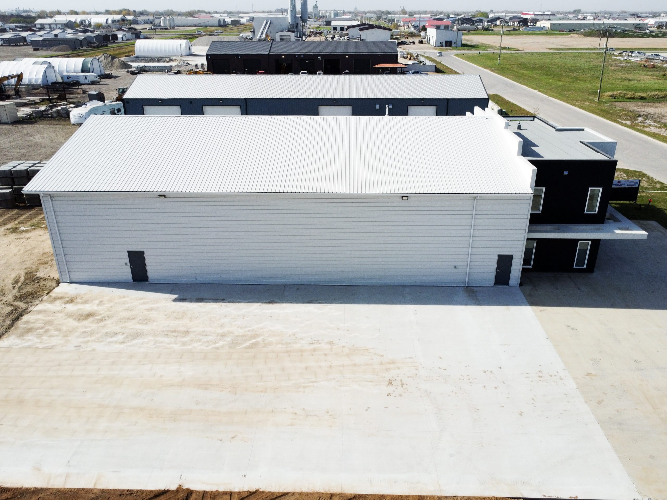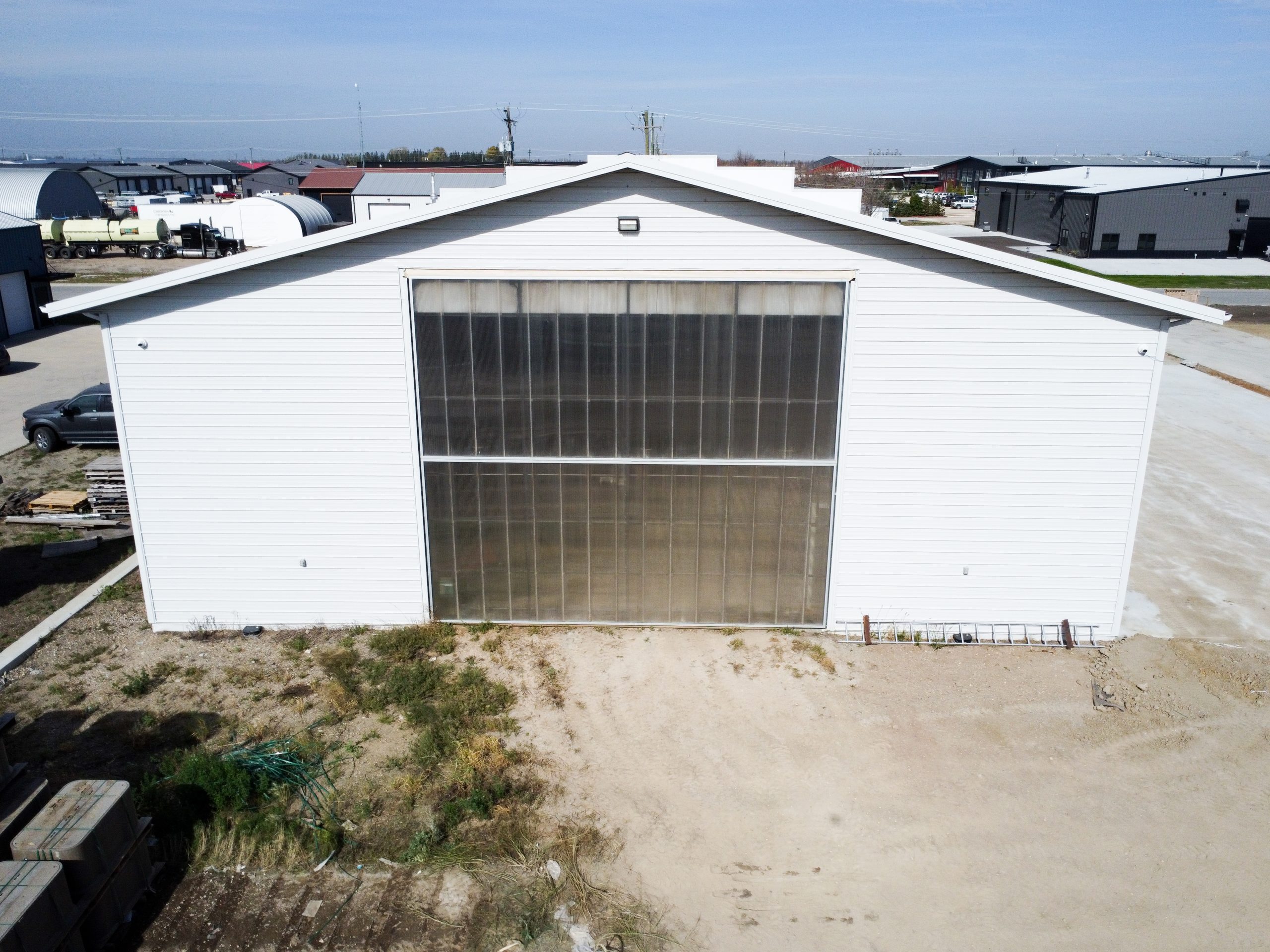 Commercial shop space available for lease in Winkler’s industrial park! This 5,520 sq ft shop is built with ICF construction, metal-clad exterior and interior. The shop features 19’1’ ceilings with perforated ceiling panels, 2 – 220V plugs, 24’ x 19’ south-facing transparent bi-fold door allowing for natural light and access for heavy equipment, a concrete floor with in-floor heat, and floor drains. Additionally, there is 200 amp service, a 2-piece bathroom, a forced air heating unit, and a 13’2 x 5’1 storage room.