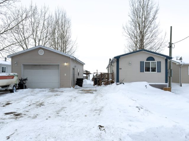 Mobile home in the quiet community of Rosebrook with no backyard neighbours! The interior features a sunken living room, a spacious eat-in kitchen, the primary bedroom with 4 pc ensuite, two addiotnal bedrooms, and another 4 pc bath. Also on the property you will find a well insulated 20′ x 32′ heated and insulated shop...