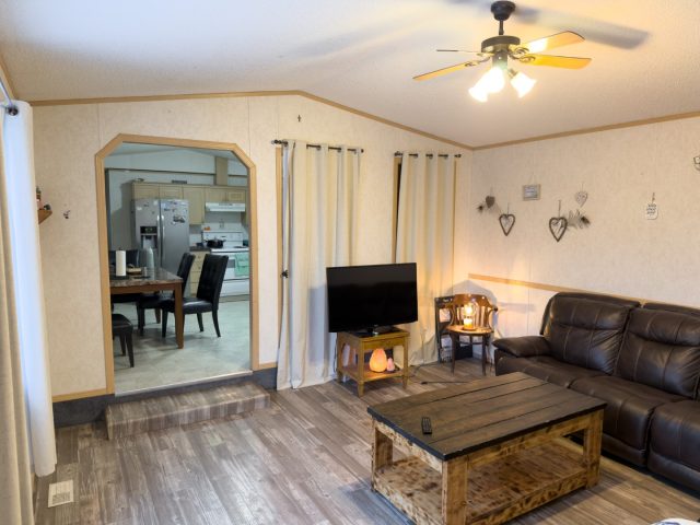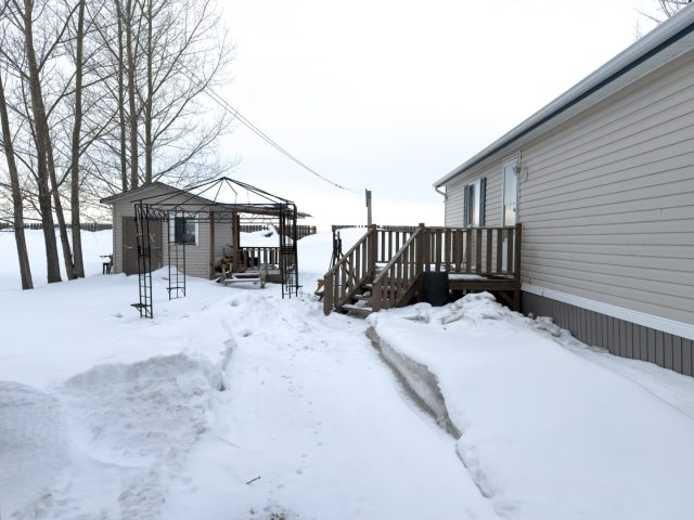 Mobile home in the quiet community of Rosebrook with no backyard neighbours! The interior features a sunken living room, a spacious eat-in kitchen, the primary bedroom with 4 pc ensuite, two addiotnal bedrooms, and another 4 pc bath. Also on the property you will find a well insulated 20′ x 32′ heated and insulated shop...
